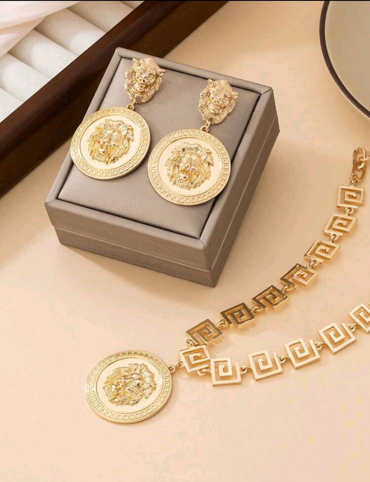 Златен дамски комплект версаче колие + обеци. Обява номер 111