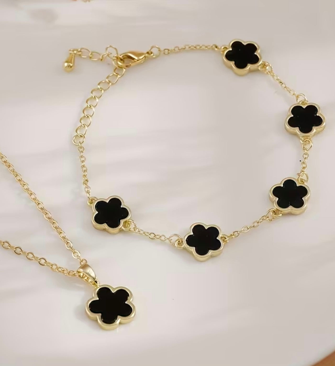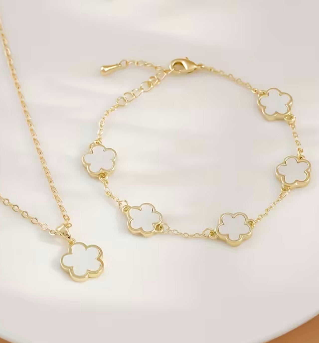 Златен дамски комплект гривна и колие детелинки обява комер 81
