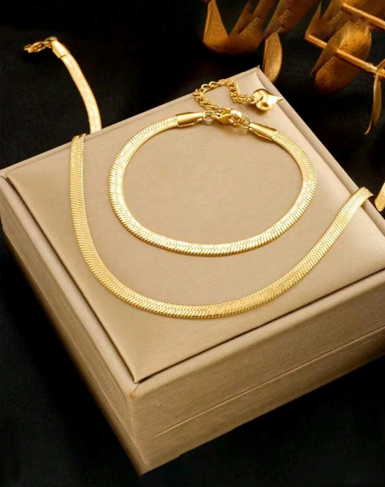 Колието и гривната са нови изработени от медицинско злато и не променят цвета си ю страхотна евтина алтернатива на супер скъпото злато днешни дни. Цената е за двете заедно!