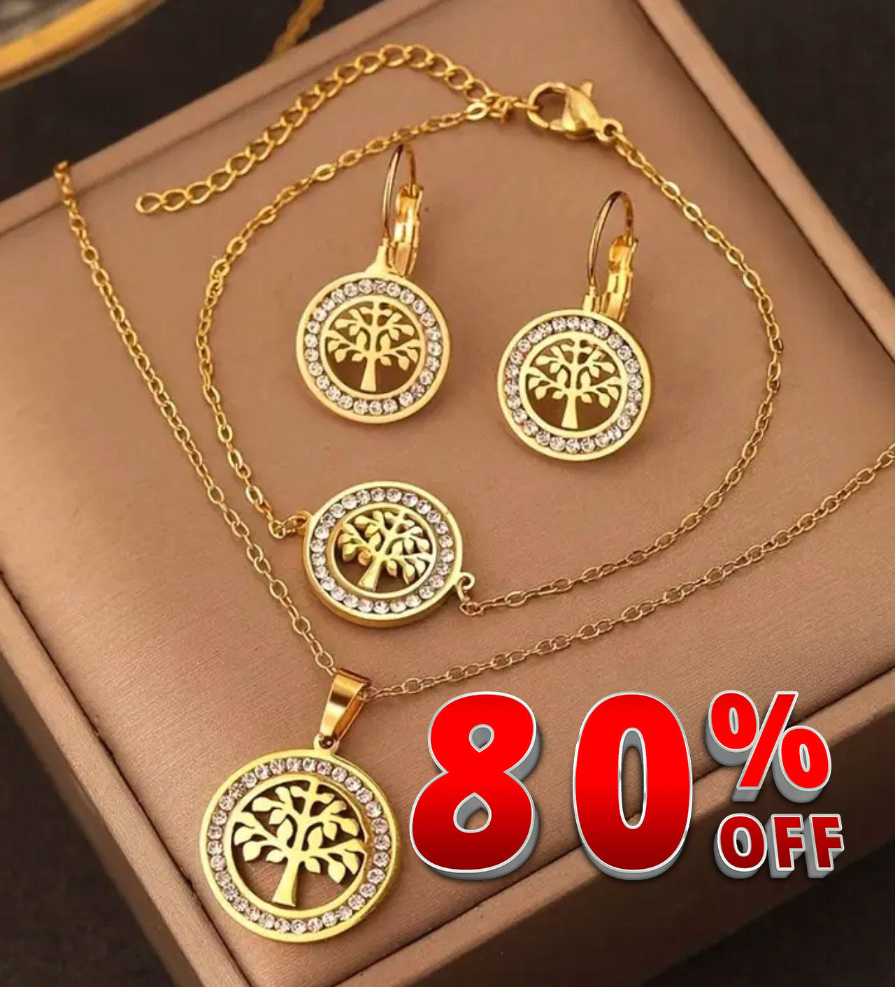 Златен дамски комплект дървото на живота. Колие обеци и гривна. Обява номер 18
