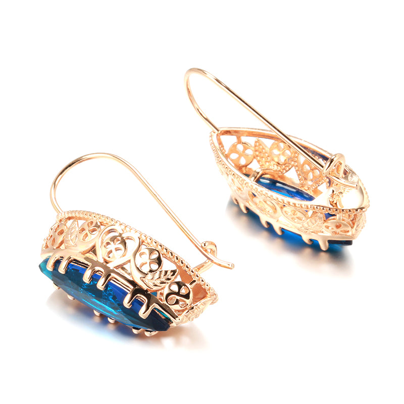 Златен дамски комплект колие + обеци син камък