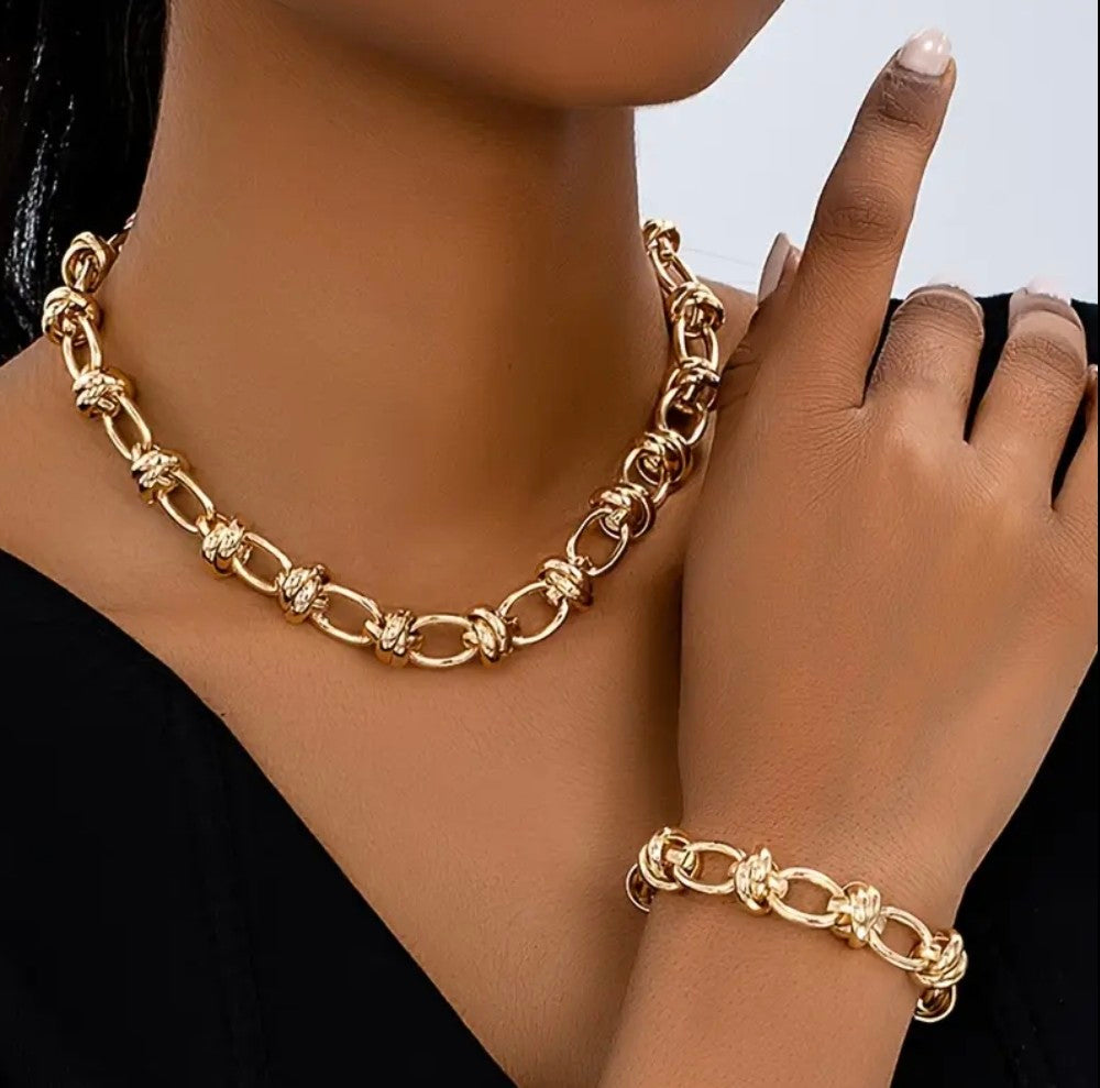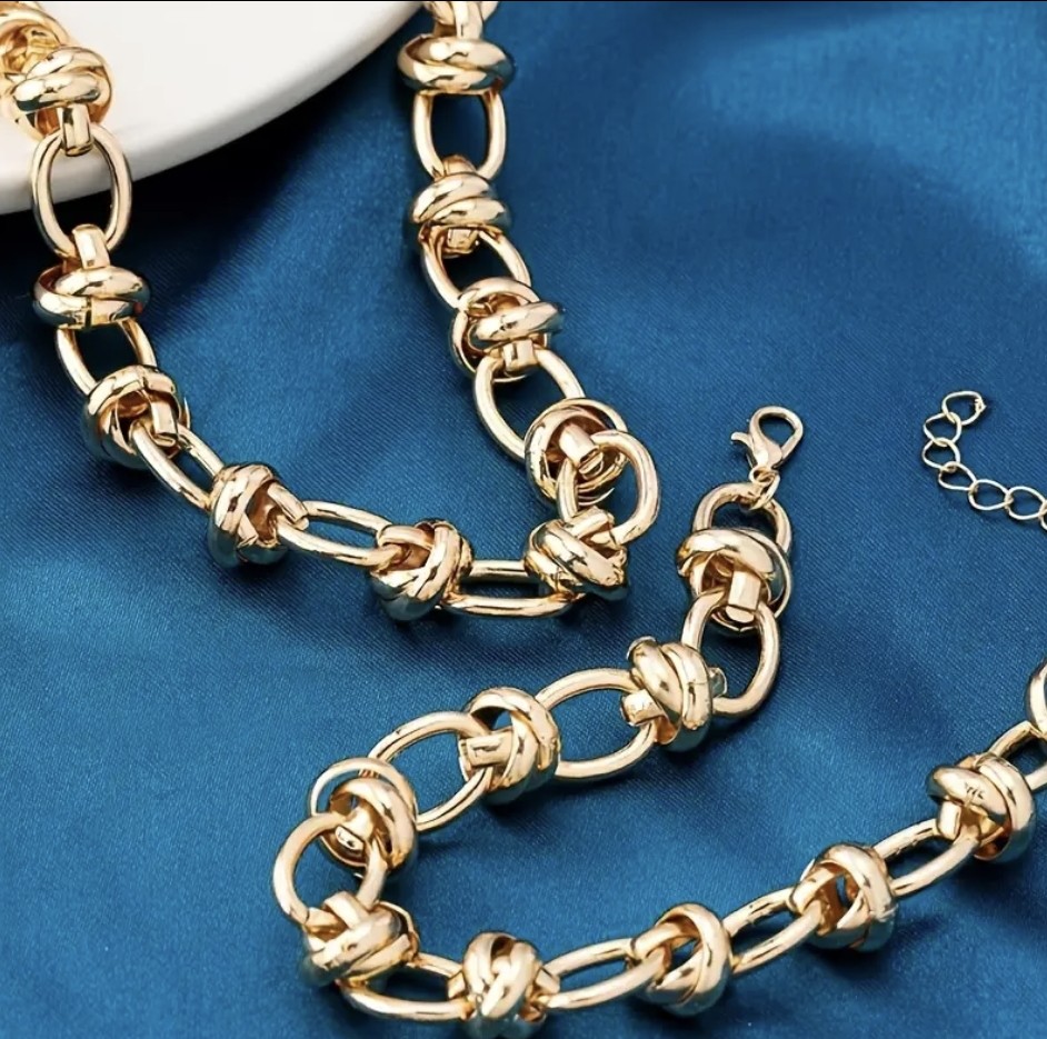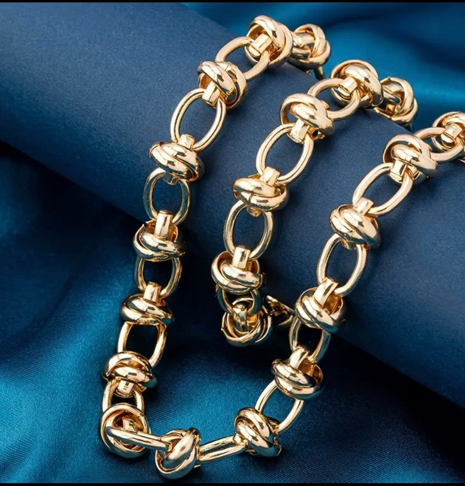 Комплекта е нов изработен е от медицинско злато и не променят цвета си. Страхотна евтина алтернатива на супер скъпото злато днешни дни. Цената е за гривната и ланеца заедно