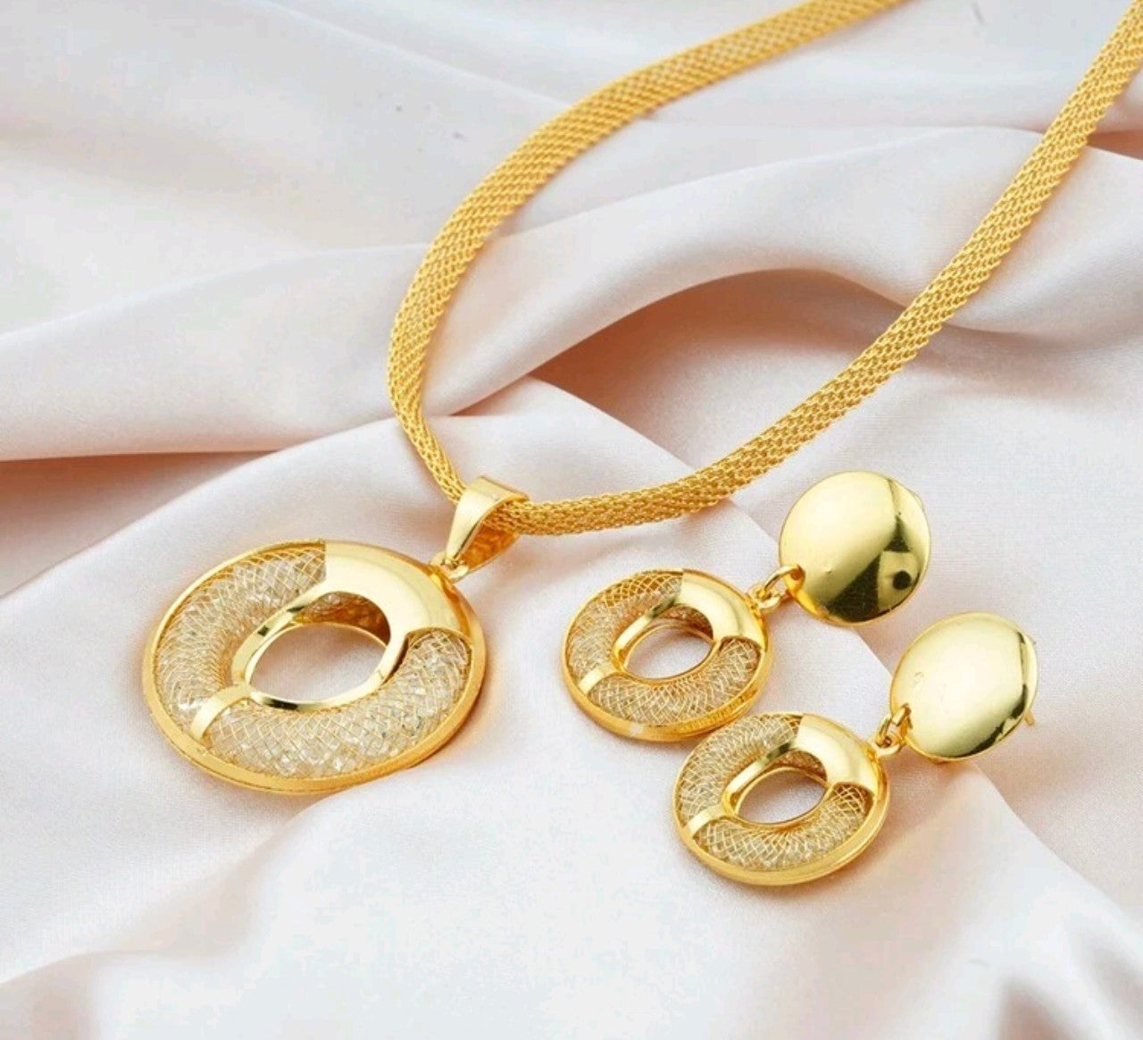 Комплекта е нов изработен е от медицинско злато и не променят цвета си. Цената е за всичко заедно. Страхотна евтина алтернатива на супер скъпото злато днешни дни.