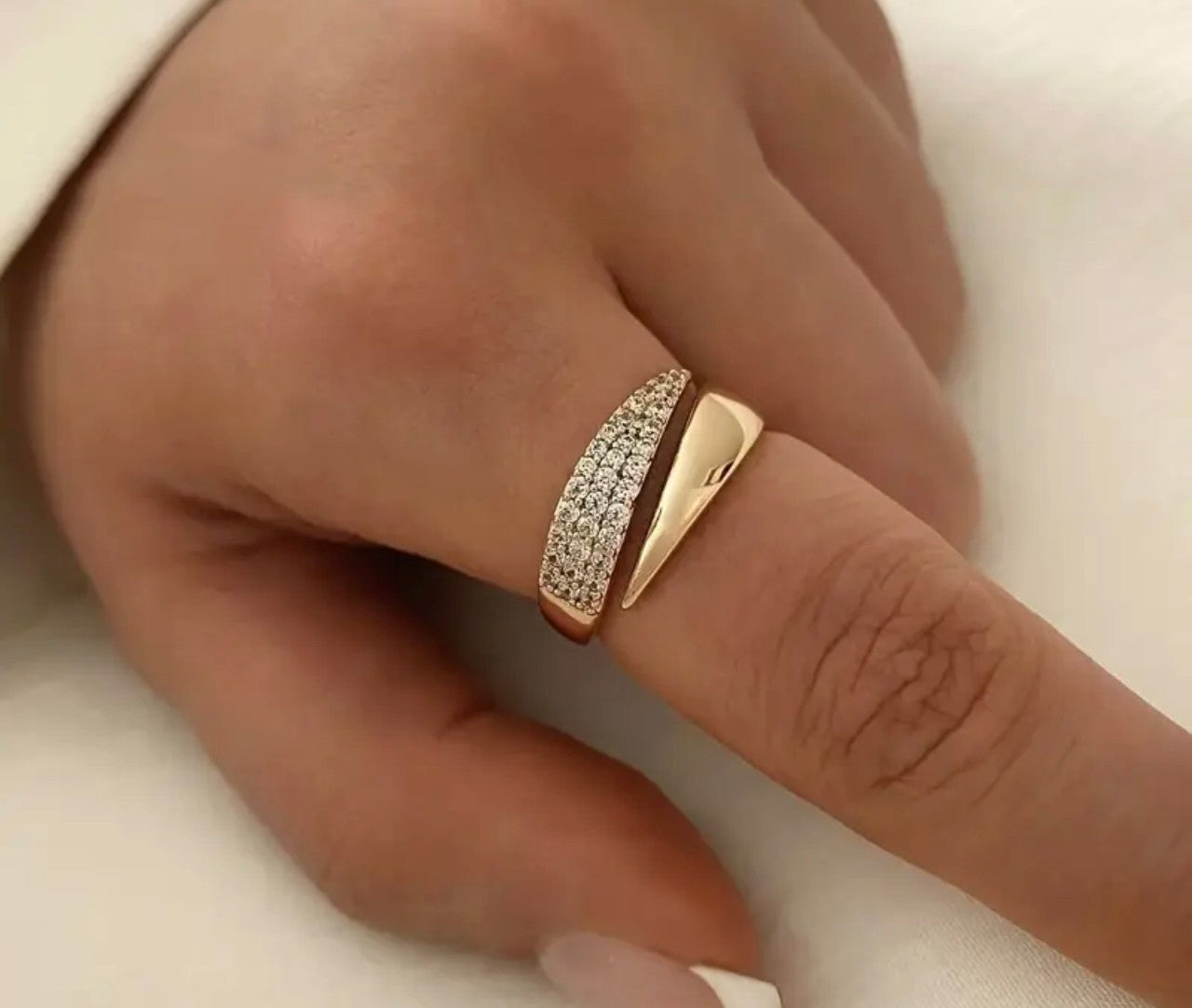 Пръстена е нов изработен е от медицинско злато и не променят цвета си. Размера може да се нагажда по пръста!