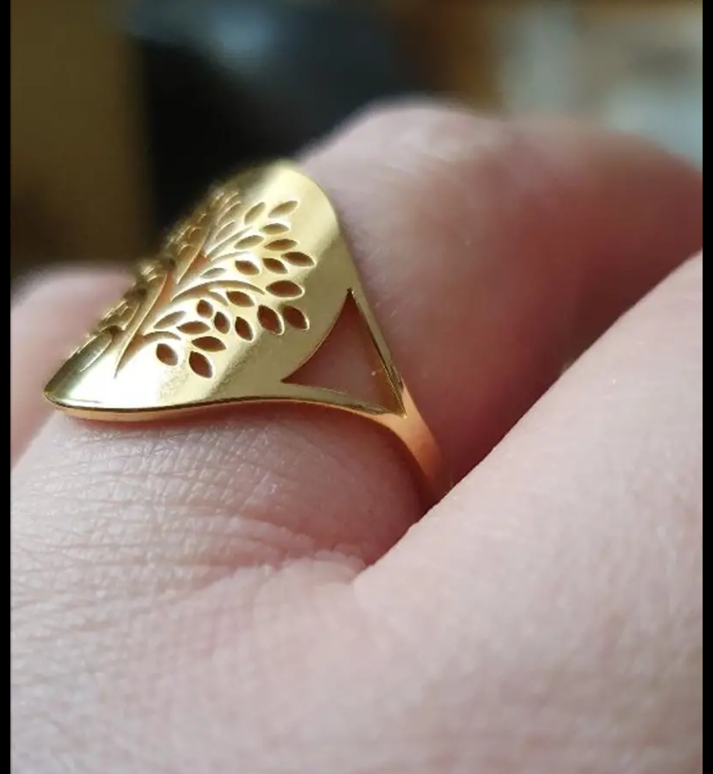 Пръстена е нов изработен от медицинско злато. Не променя цвета си. Страхотно бижу на достъпна цена !