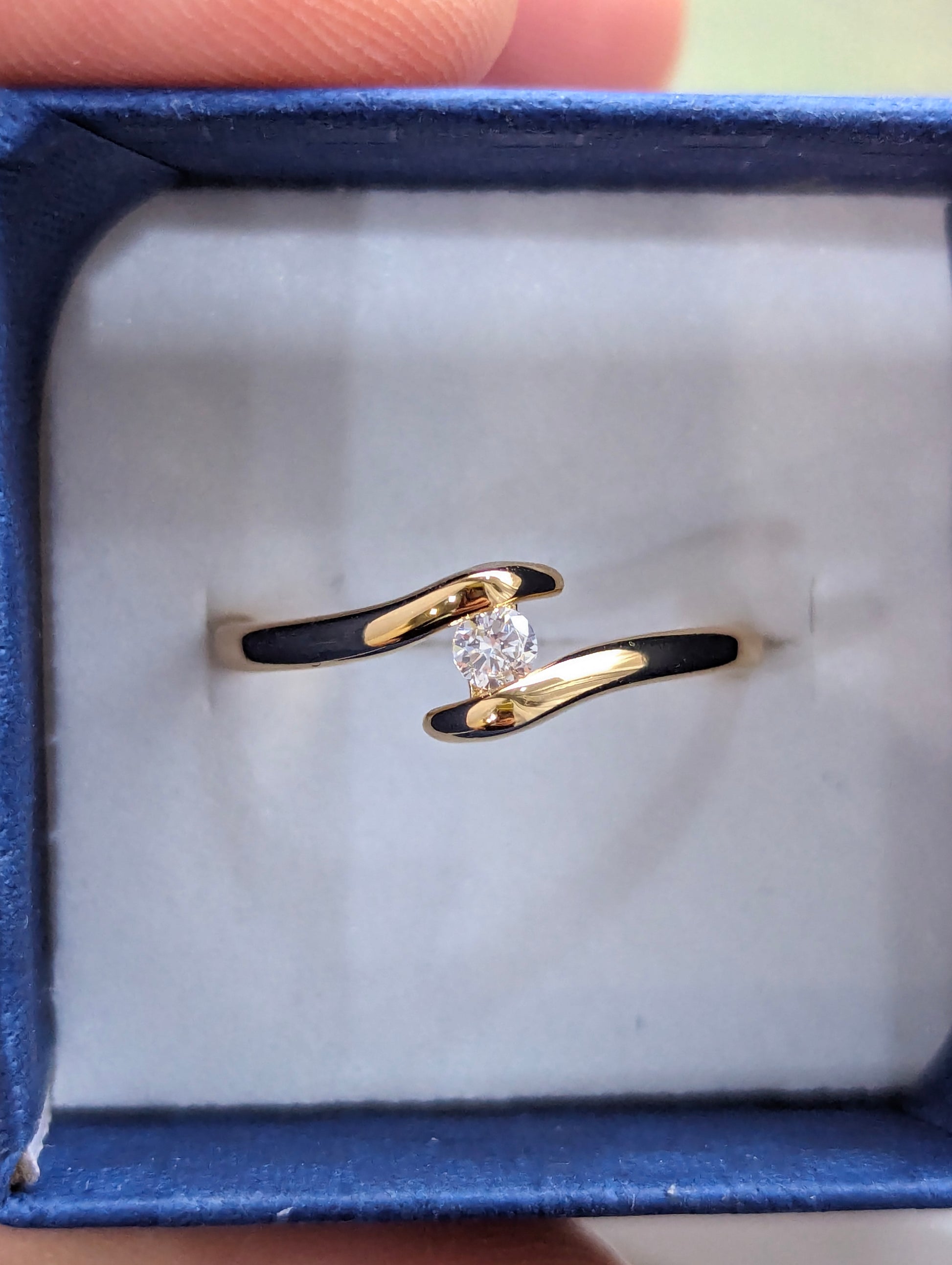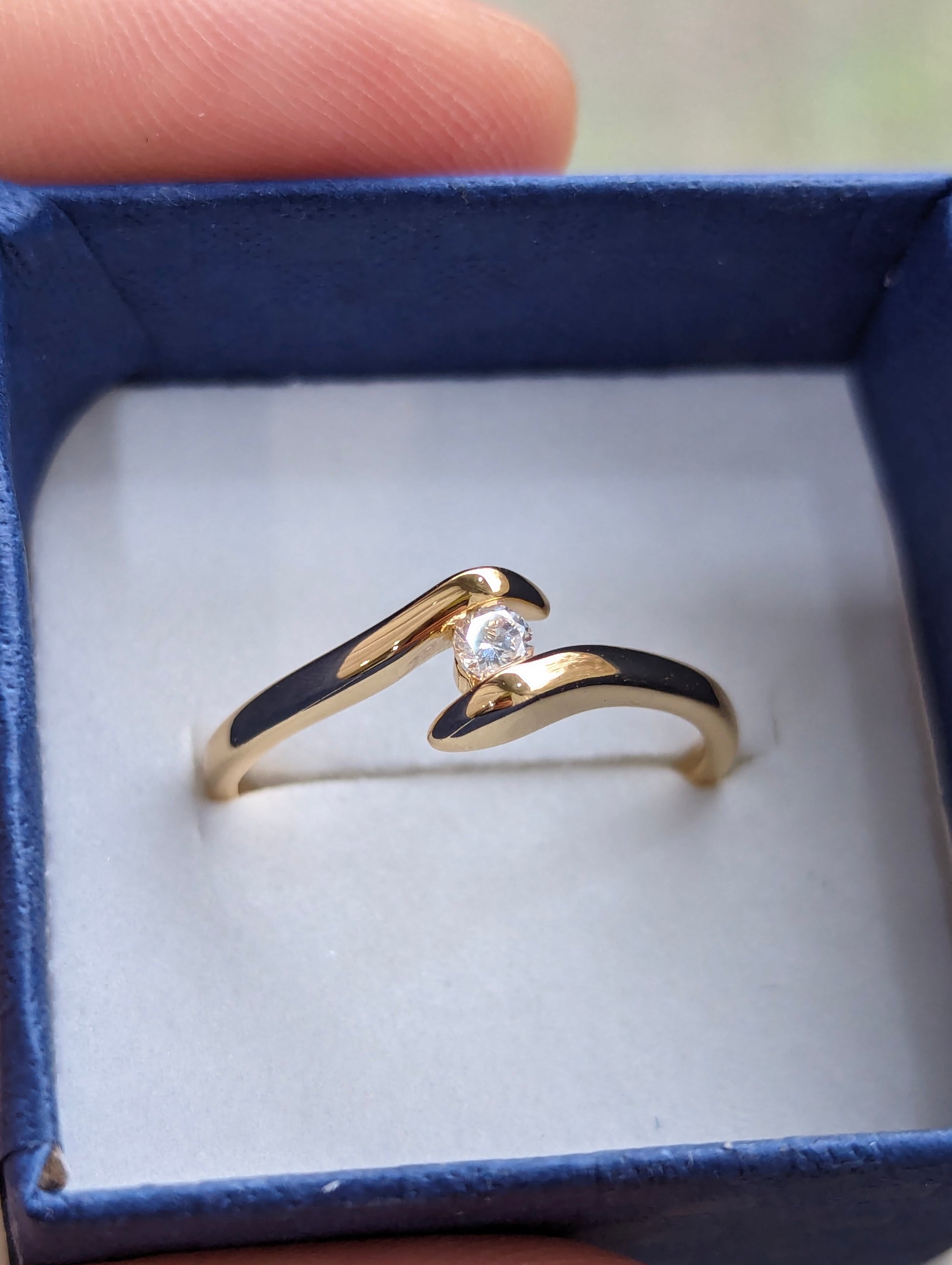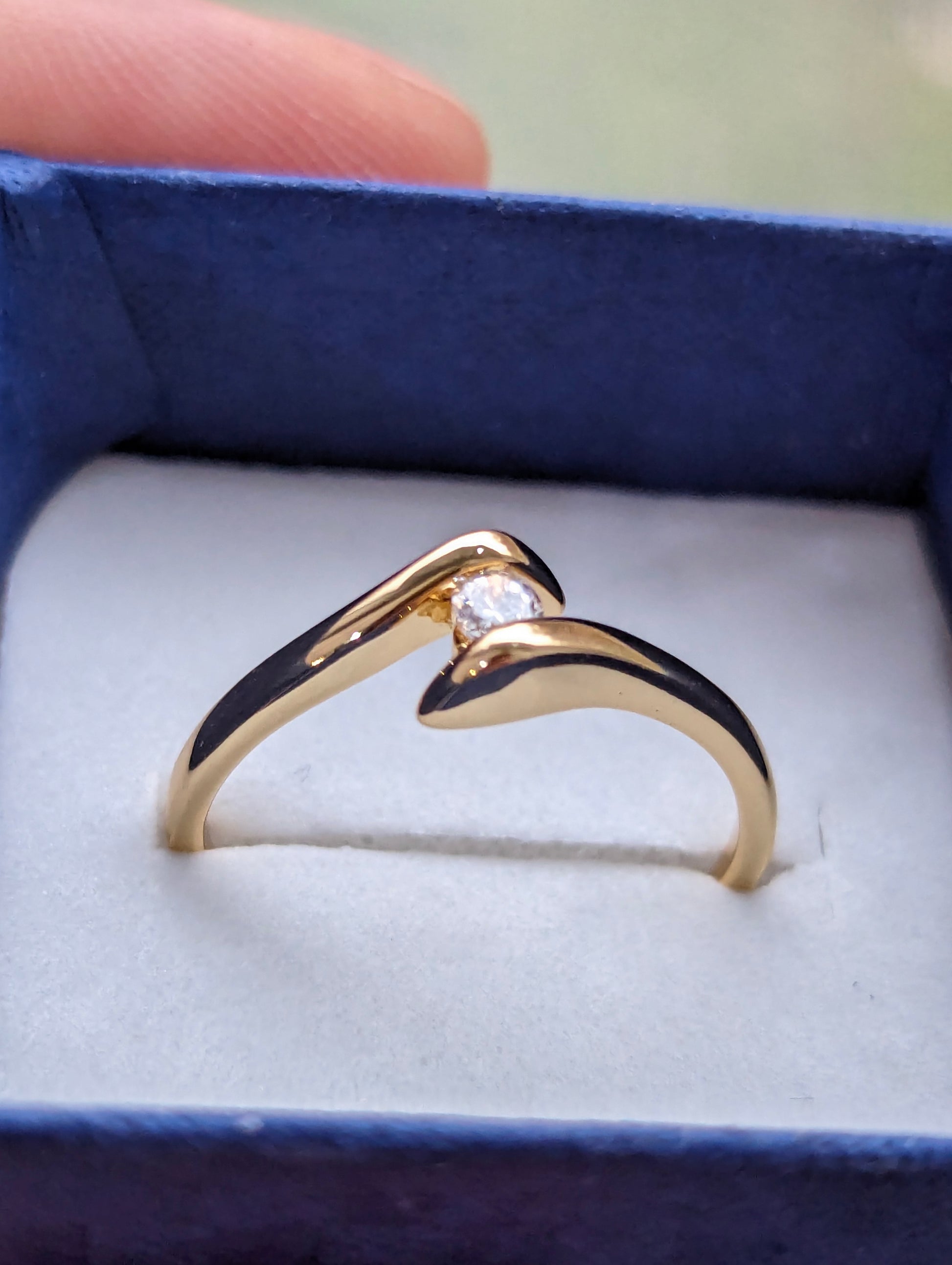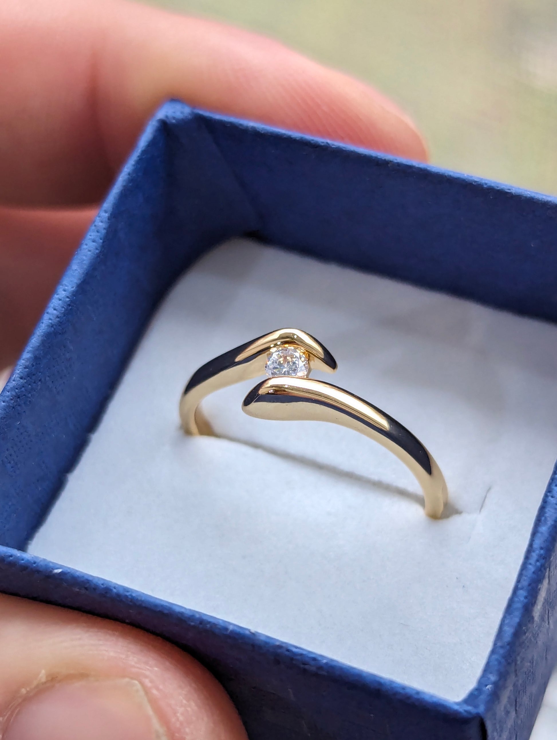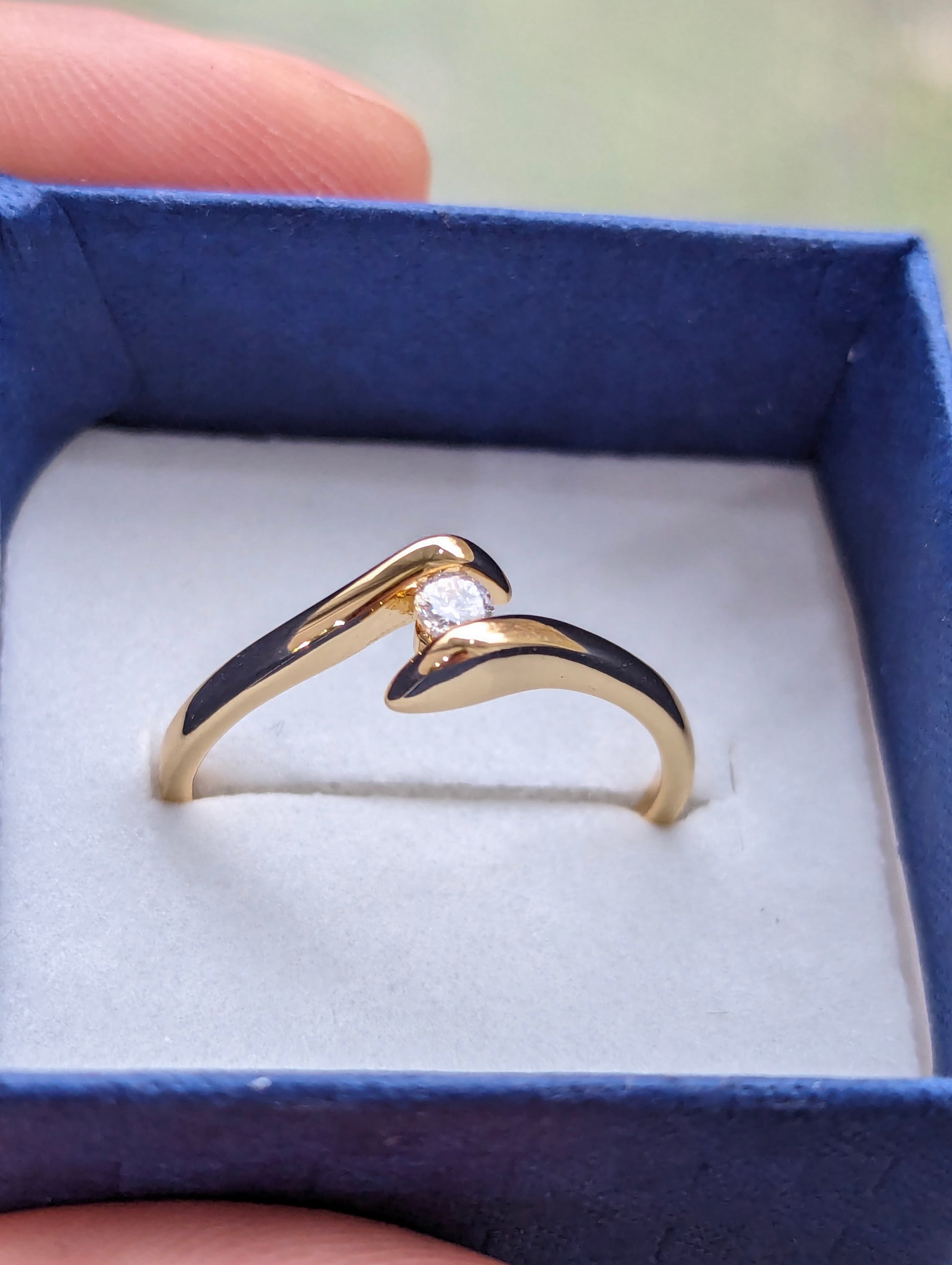 Пръстена е изработен от медицинско злато с високо качество и огромен красив камък цирконии (по подобие на Сваровски!) Пръстена може да се мокри и не си променя цвета. Никаква разлика със супер скъпото злато ! Налични размери изберете в полето размер при поръчка