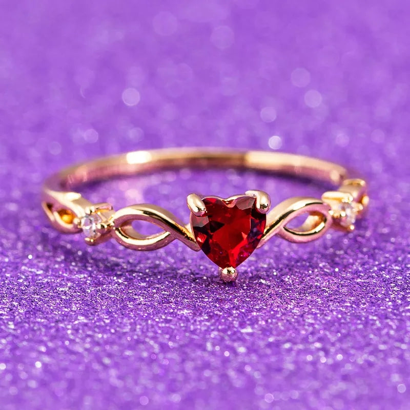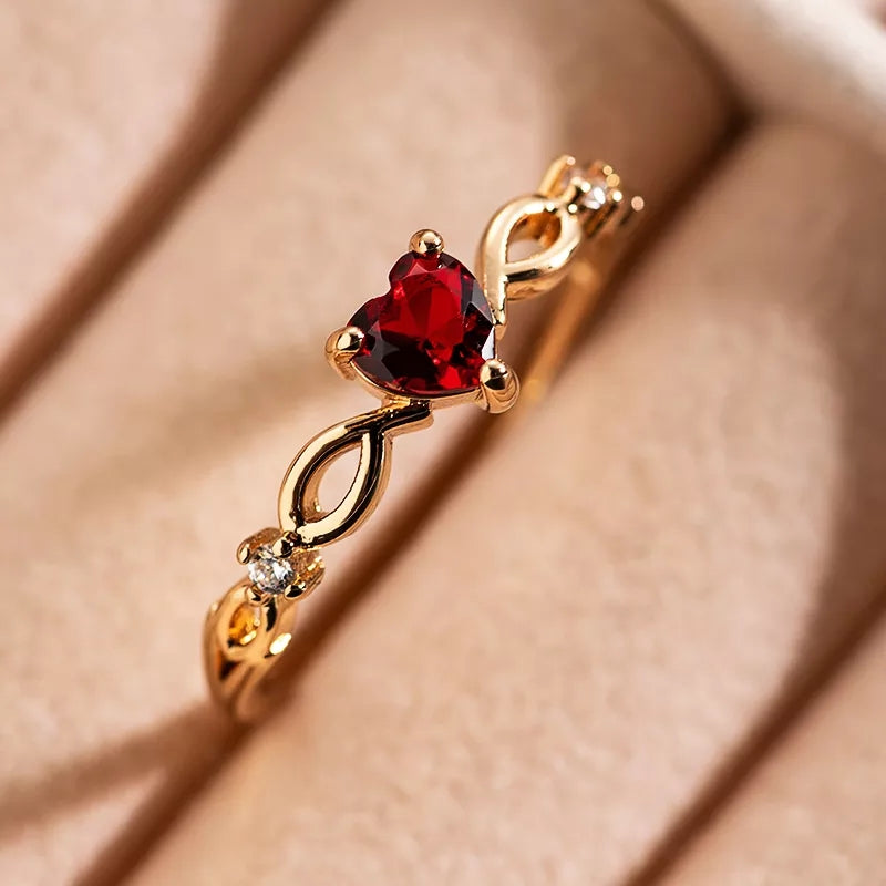 Златен дамски пръстен червено сърце