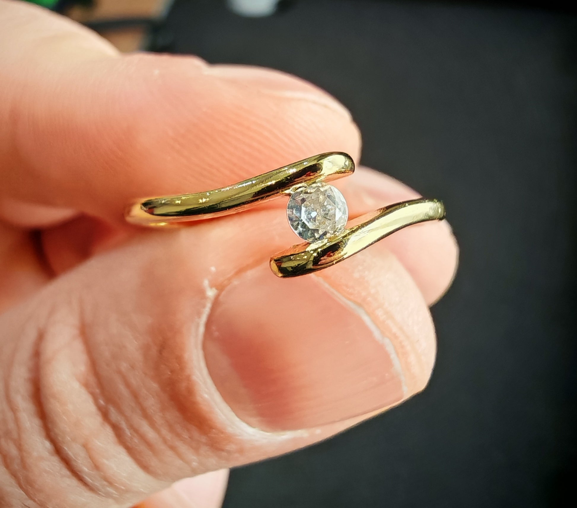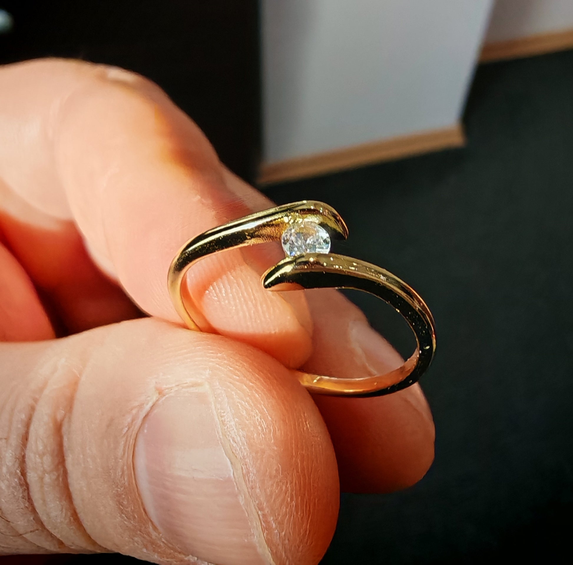 Пръстена е изработен от медицинско злато и не променят цвета си. Имаме налични размери. Страхотна евтина алтернатива на супер скъпото злато днешни дни