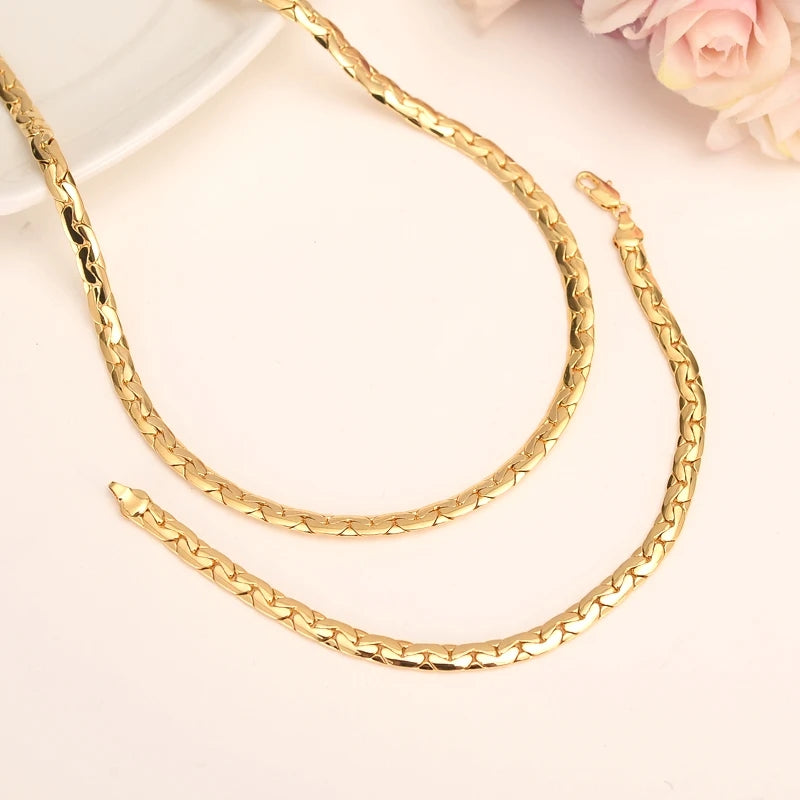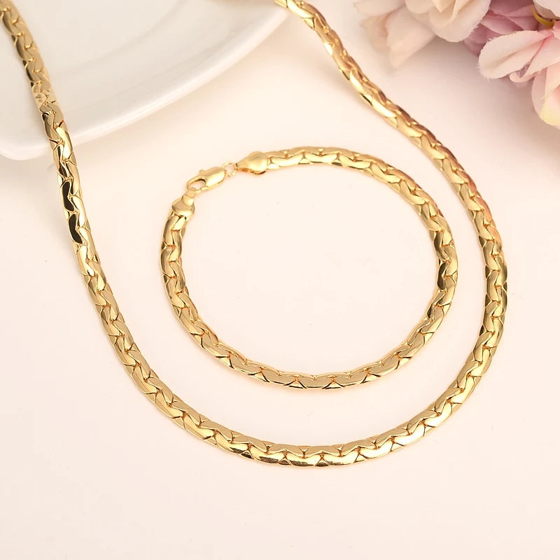Комплекта е изработен от медицинско злато (медицинска стомана) . Не променя цвета си при мокрене и носене. Комплекта е подходящ както за жени така и за мъже.