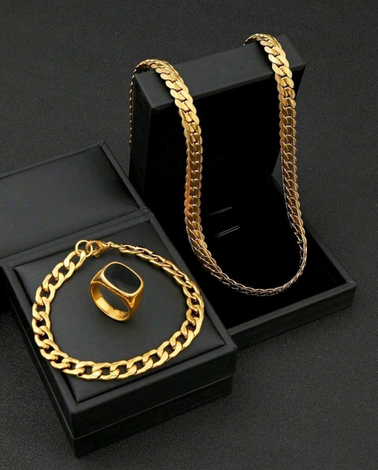 Комплекта е изработен от медицинско злато и не променят цвета си може да се мокри. Страхотна евтина алтернатива на супер скъпото злато днешни дни. Пръстена има налични размери!