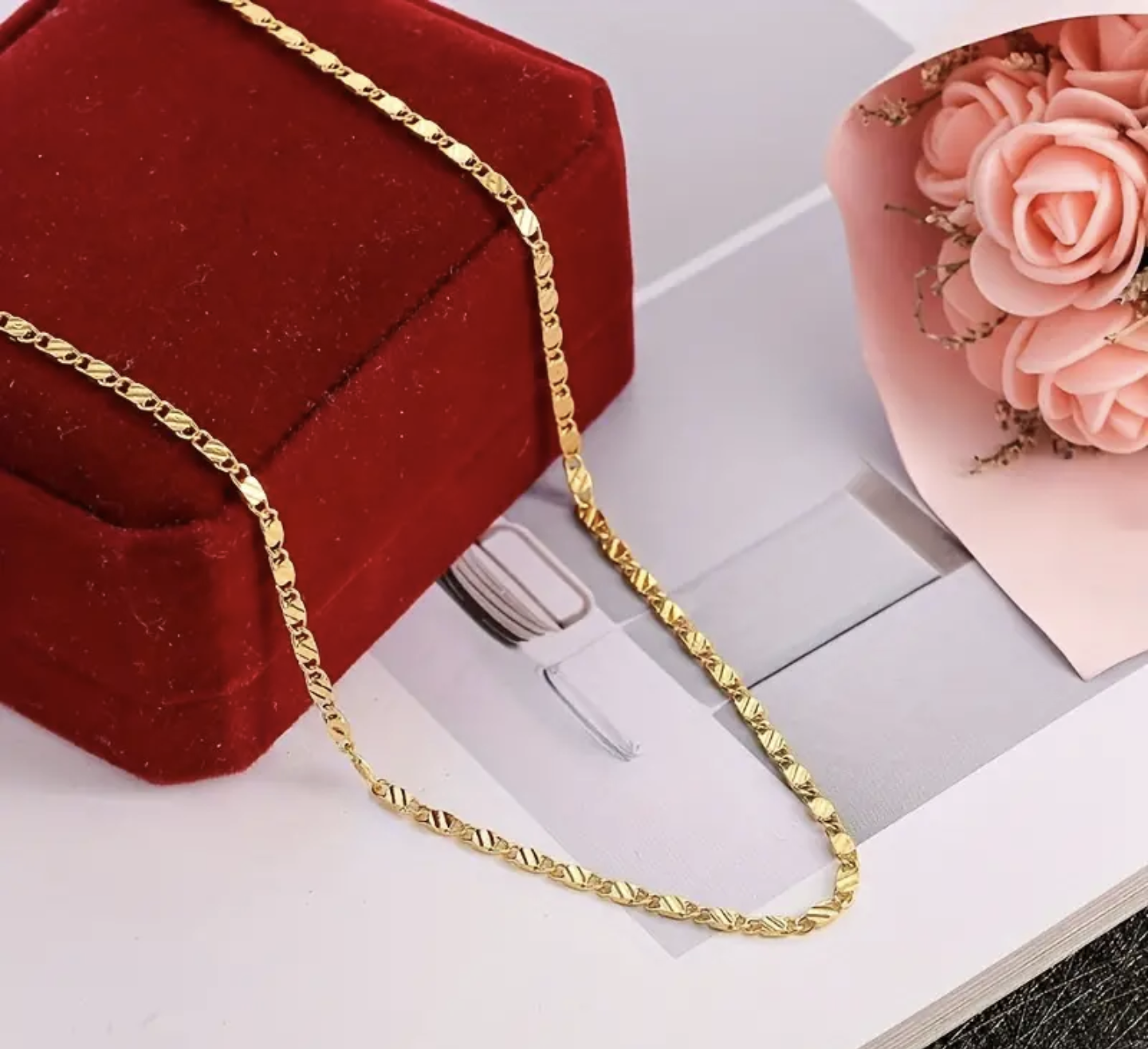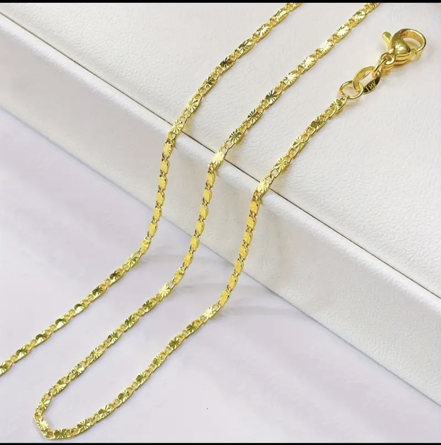 Ланеца е изработен от медицинско злато (медицинска стомана) Нов! Не си мени цвета при мокрене и носене. Страхотна алтернатива на златото 100 пъти по-ниска цена. 60см дължина 9 грама !