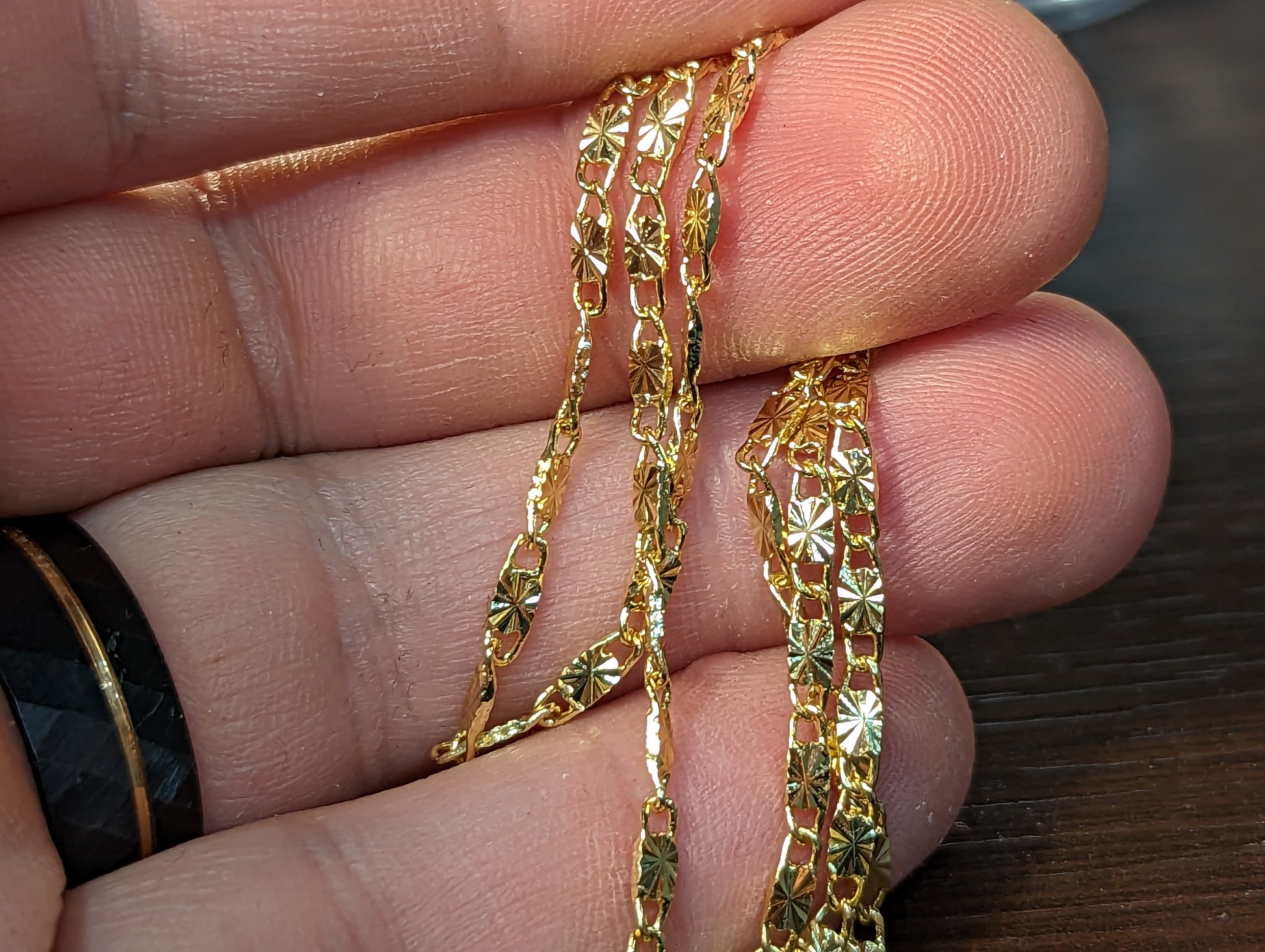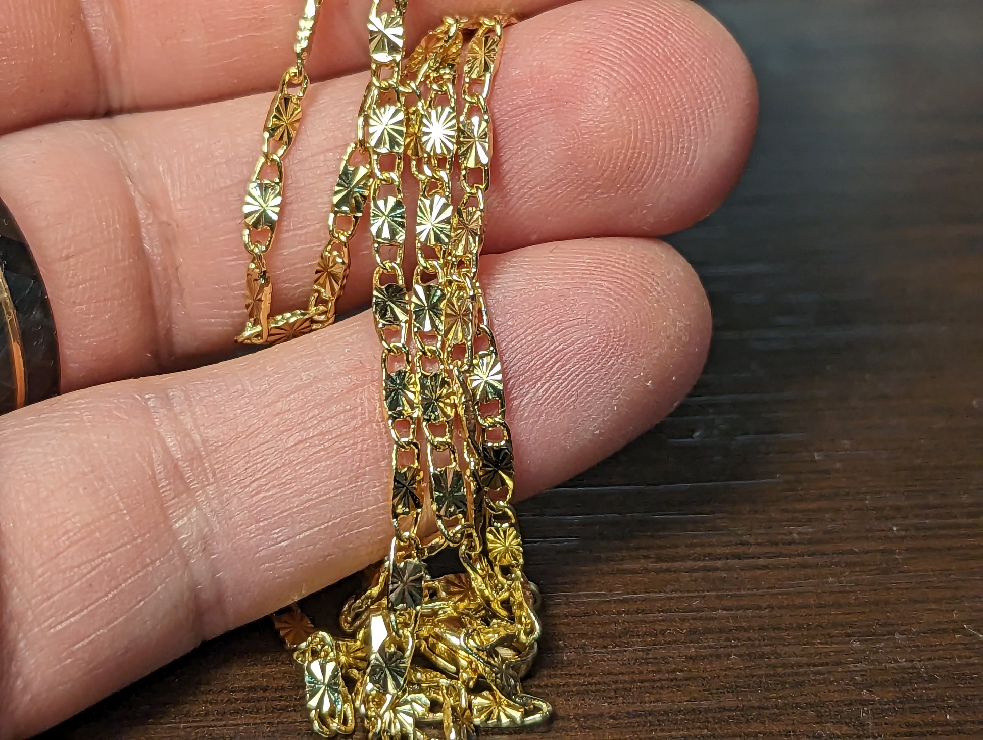 Ланеца е изработен от медицинско злато (медицинска стомана) Нов! Не си мени цвета при мокрене и носене. Страхотна алтернатива на златото 100 пъти по-ниска цена. 60см дължина 9 грама !