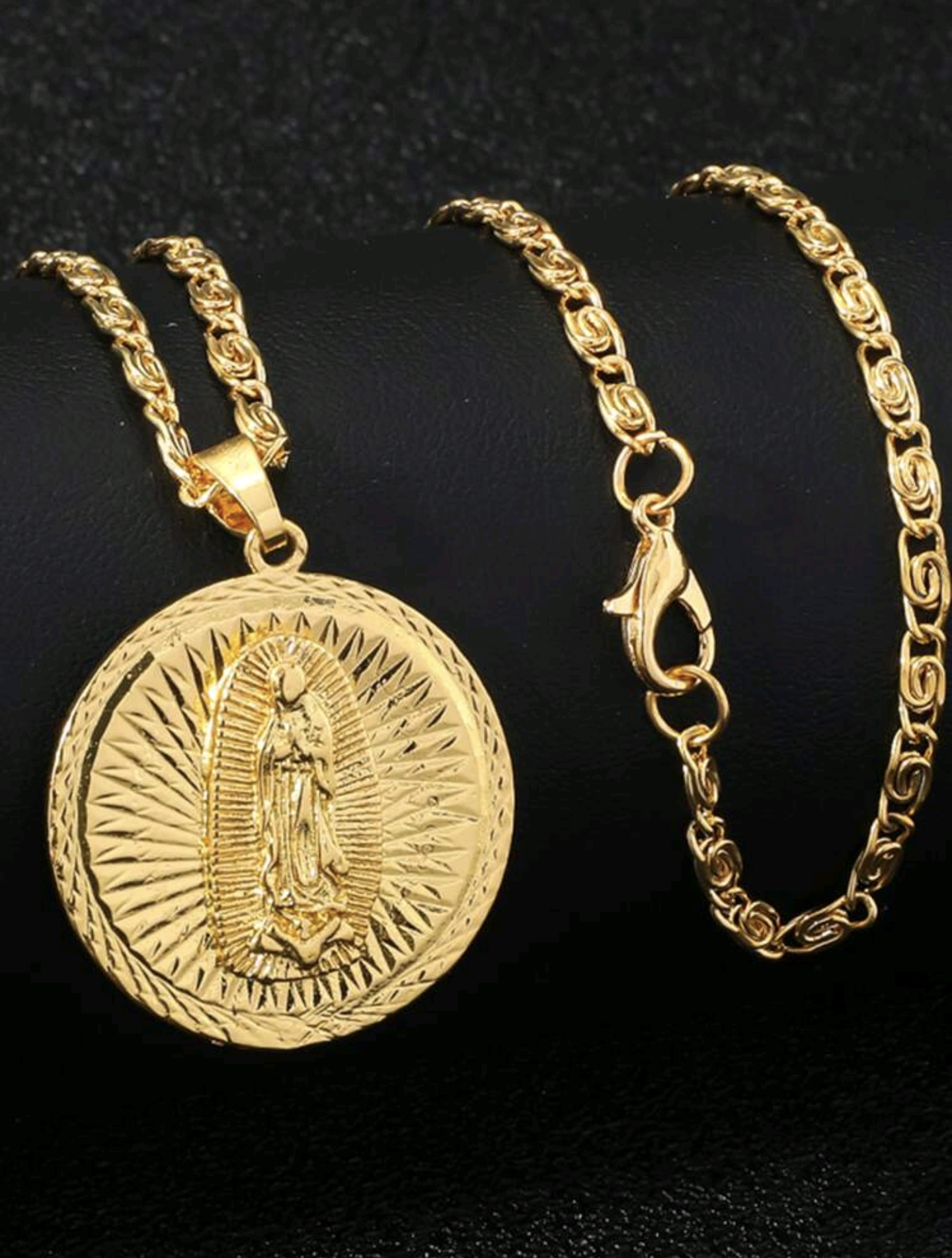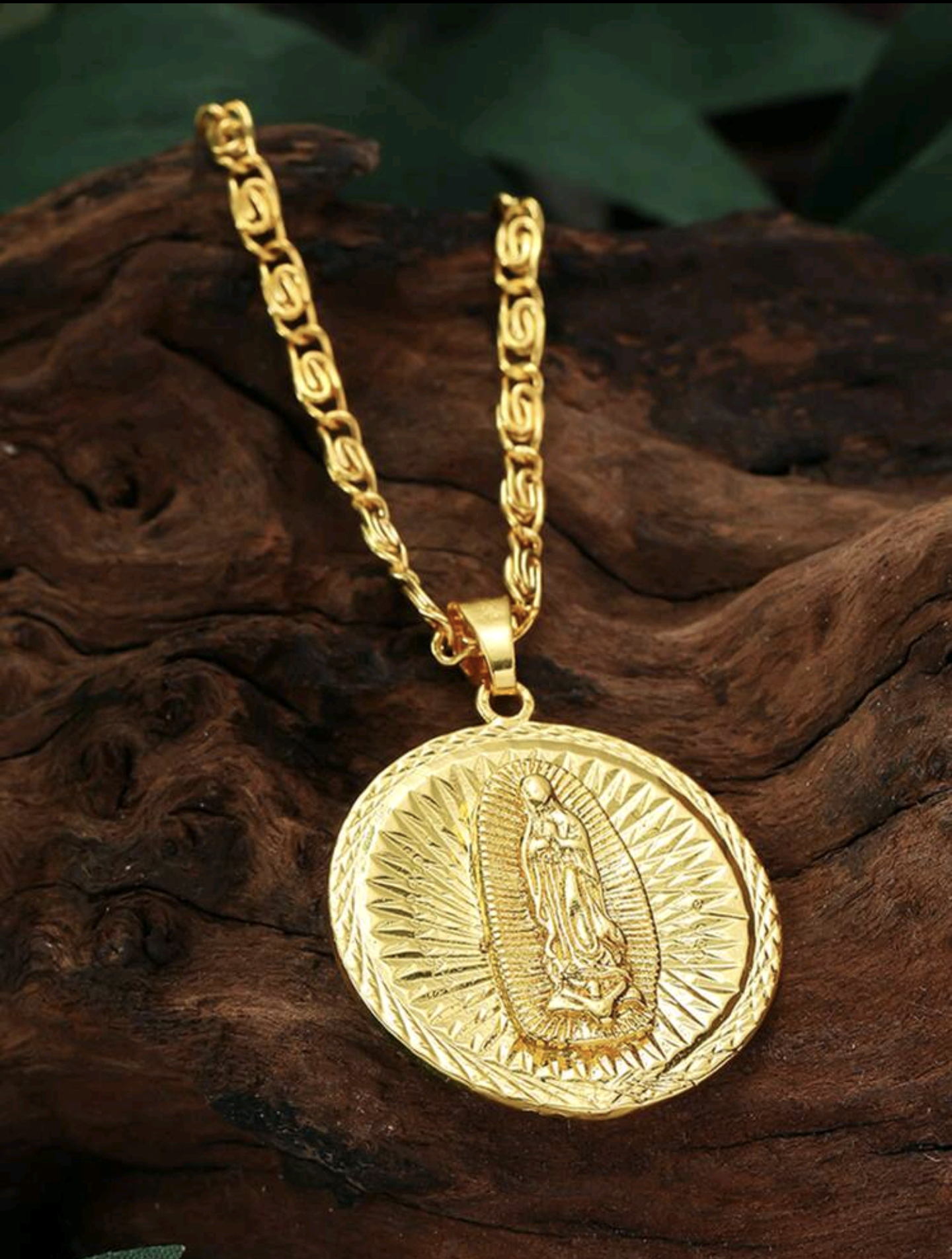 Златен ланец с висулка Дева Мария