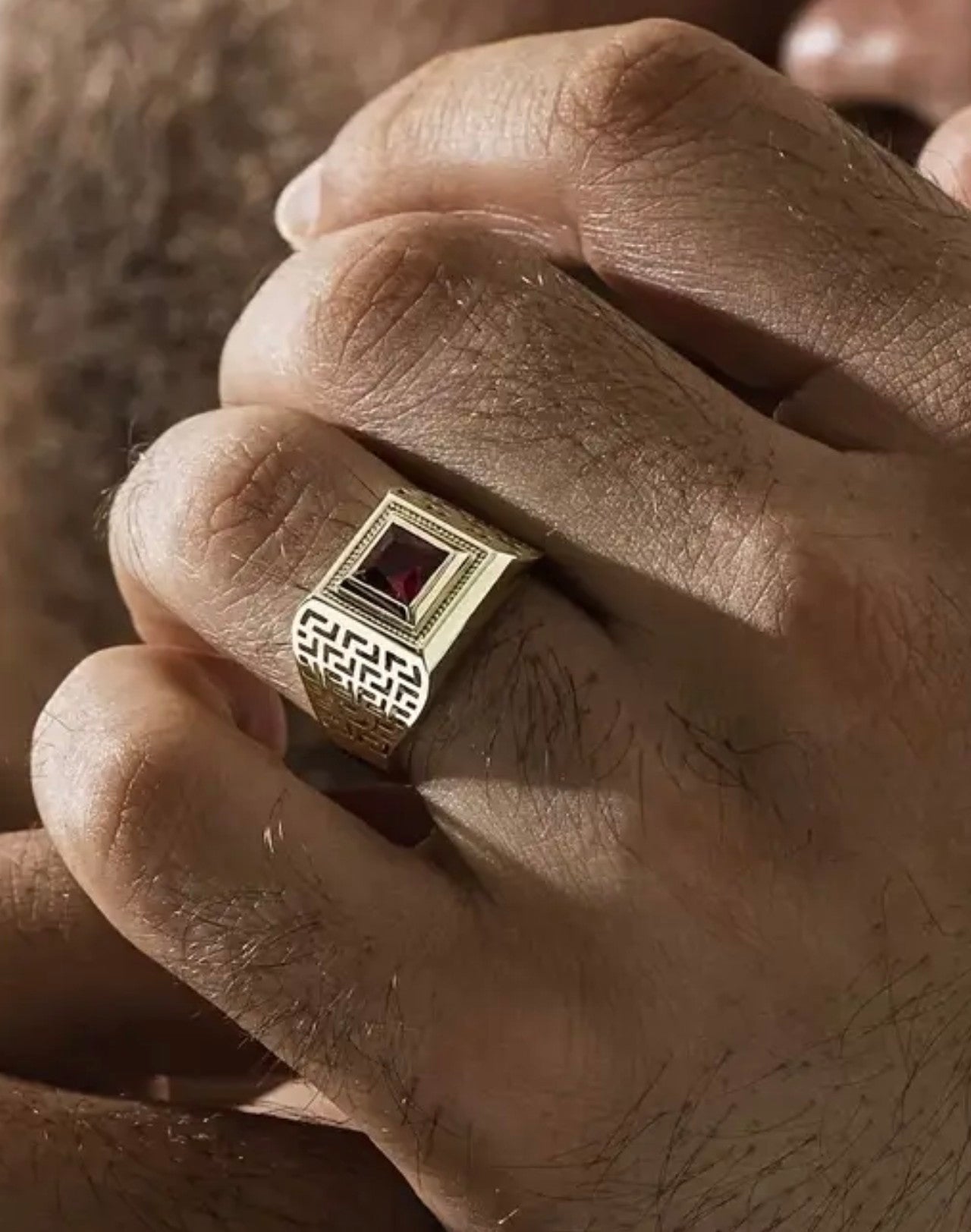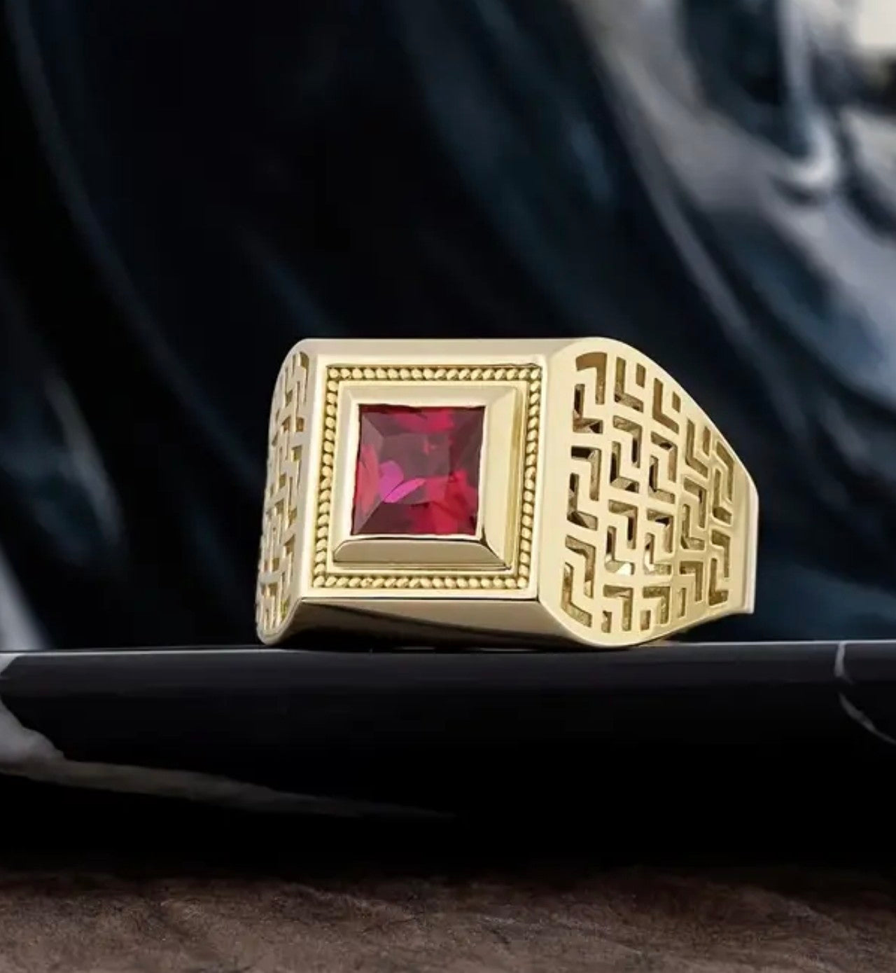 Златен мъжки пръстен с черен рубин. Обява номер 50