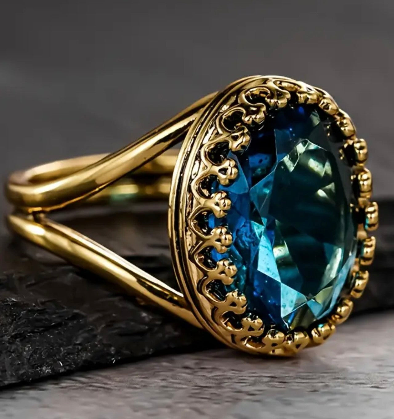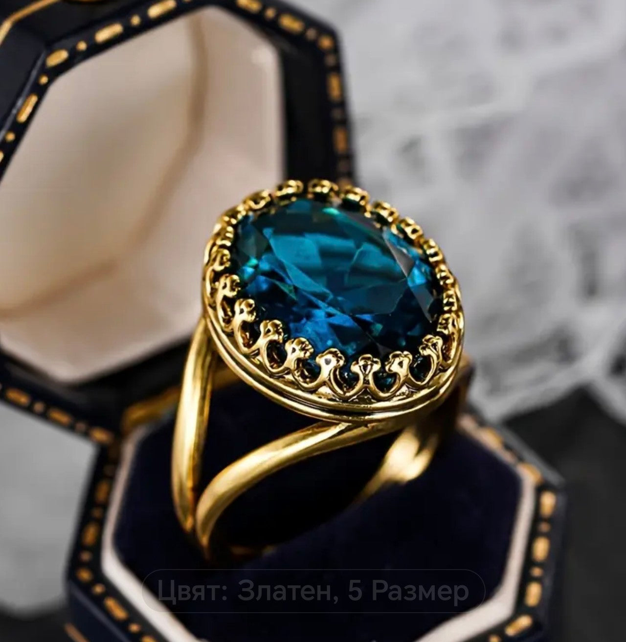 Изискан пръстен от медицинско злато с дълбок син кристал, който пленява с всяко движение на светлината. Символ на сила, елегантност и увереност — идеален избор за жена с кралско излъчване. Не потъмнява, не оставя следи и запазва блясъка си завинаги. ✨