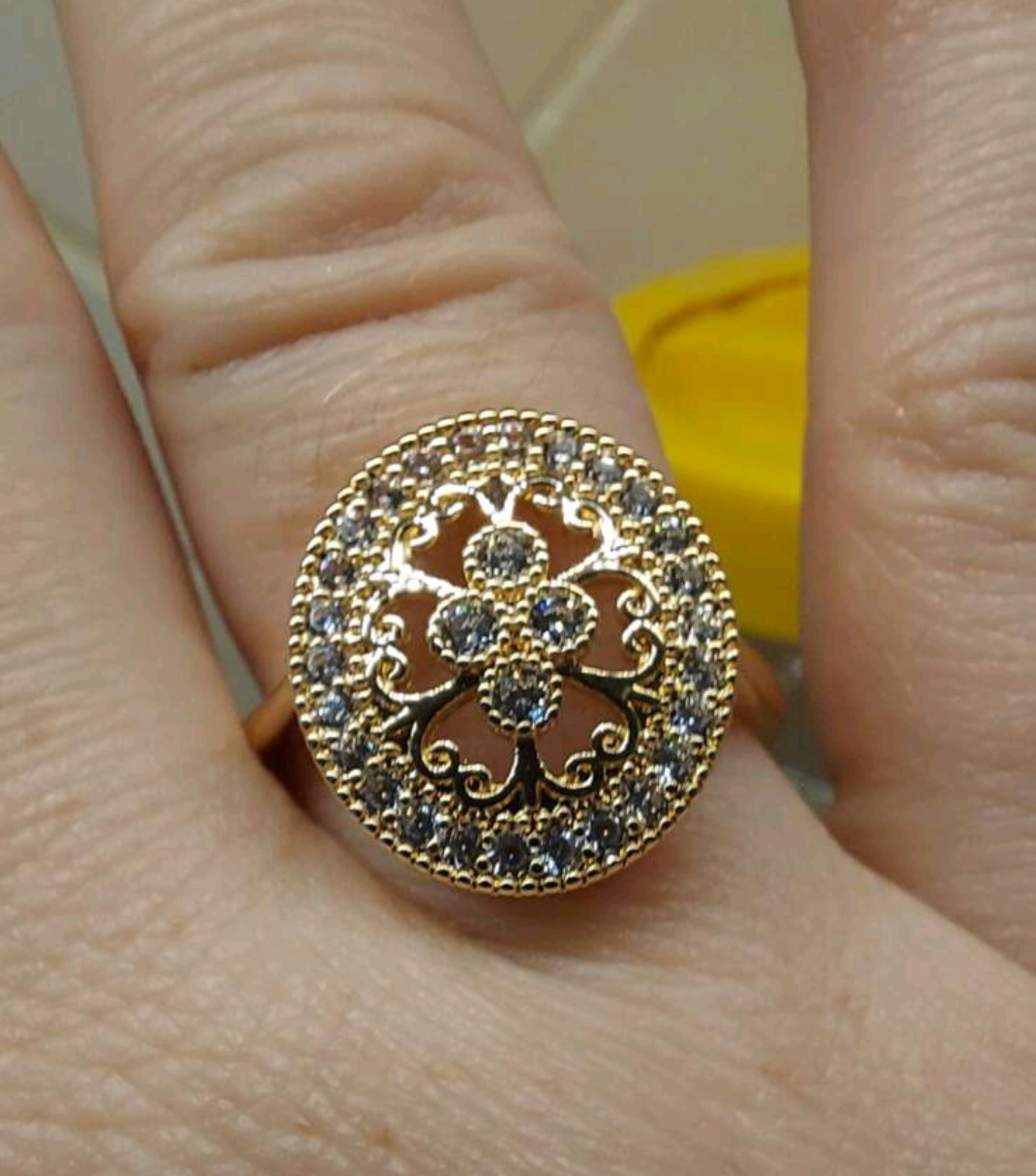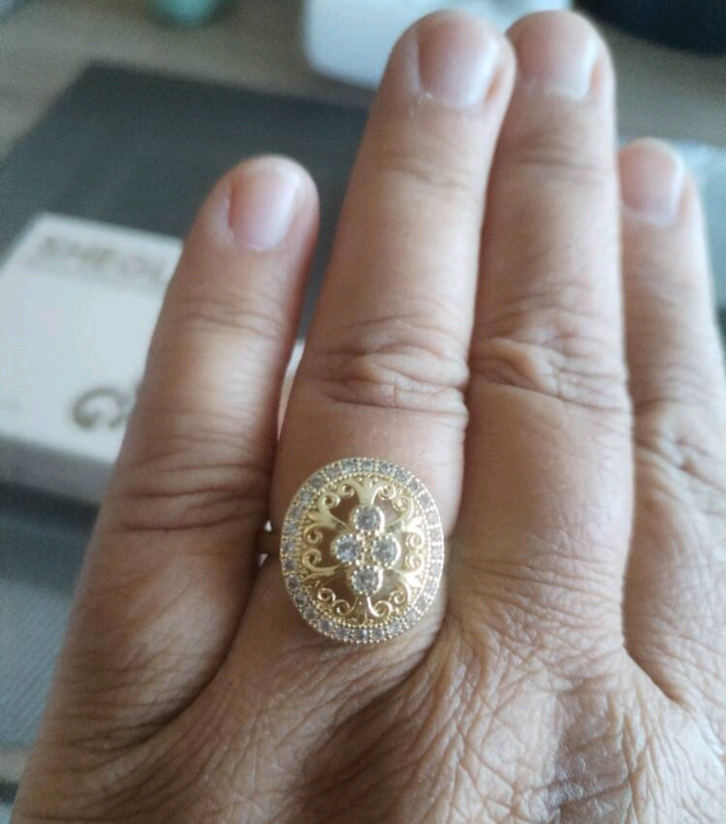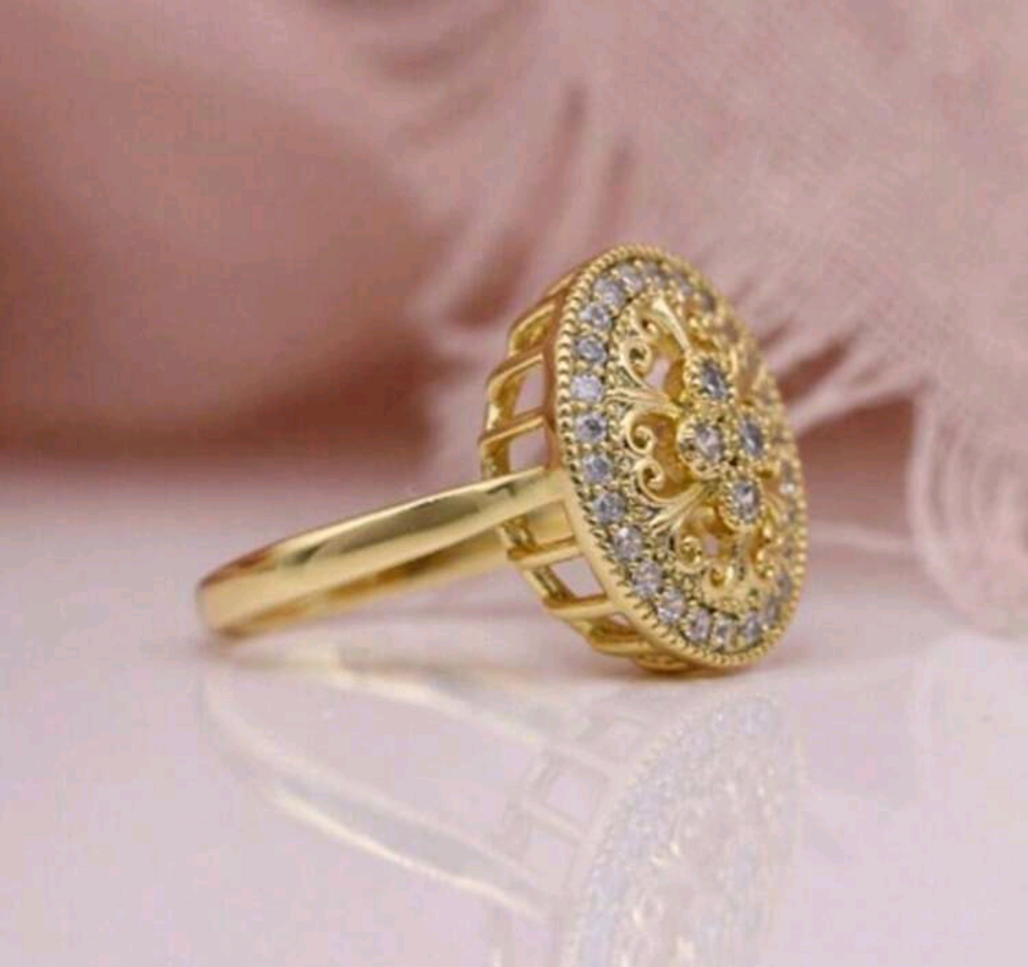 Пръстена е изработен от медицинско злато. Нов . Не променя цвета си. Налични размери!
