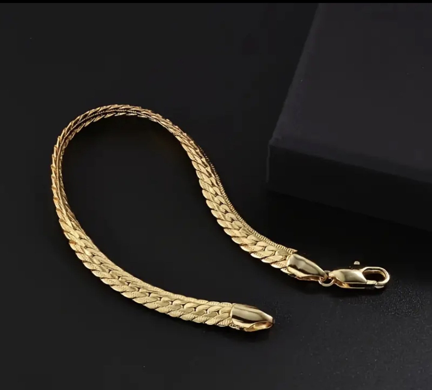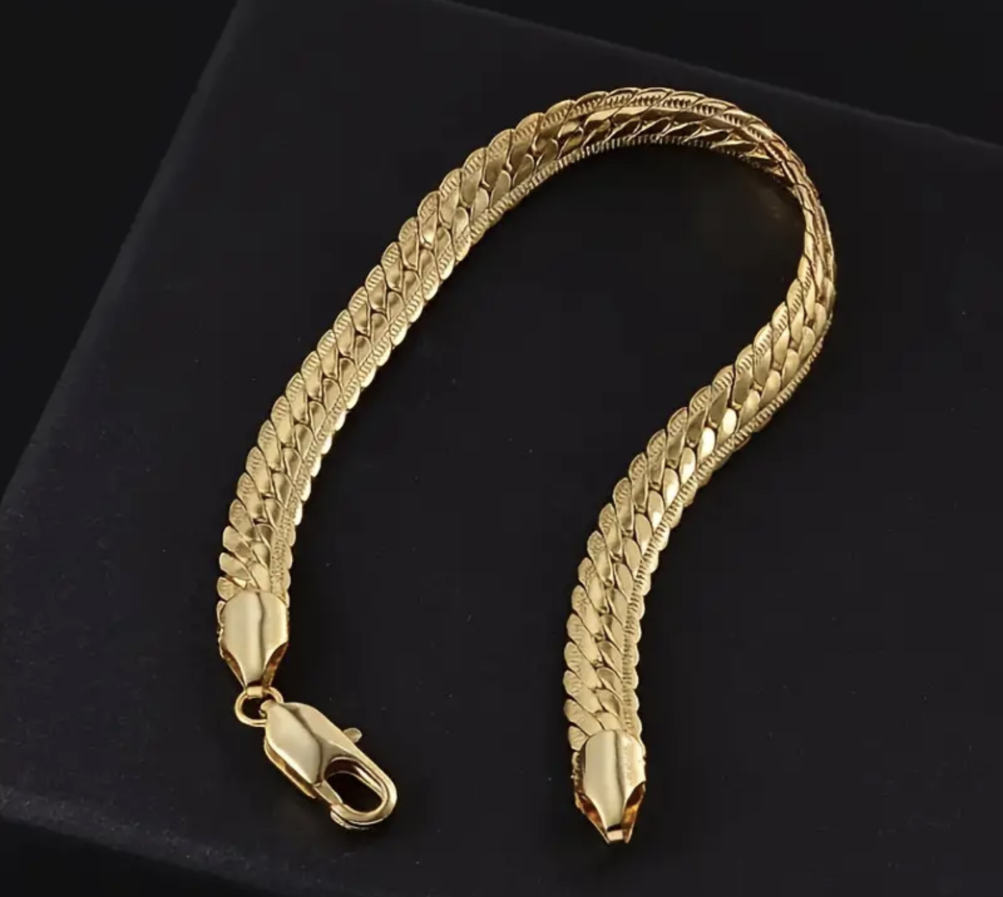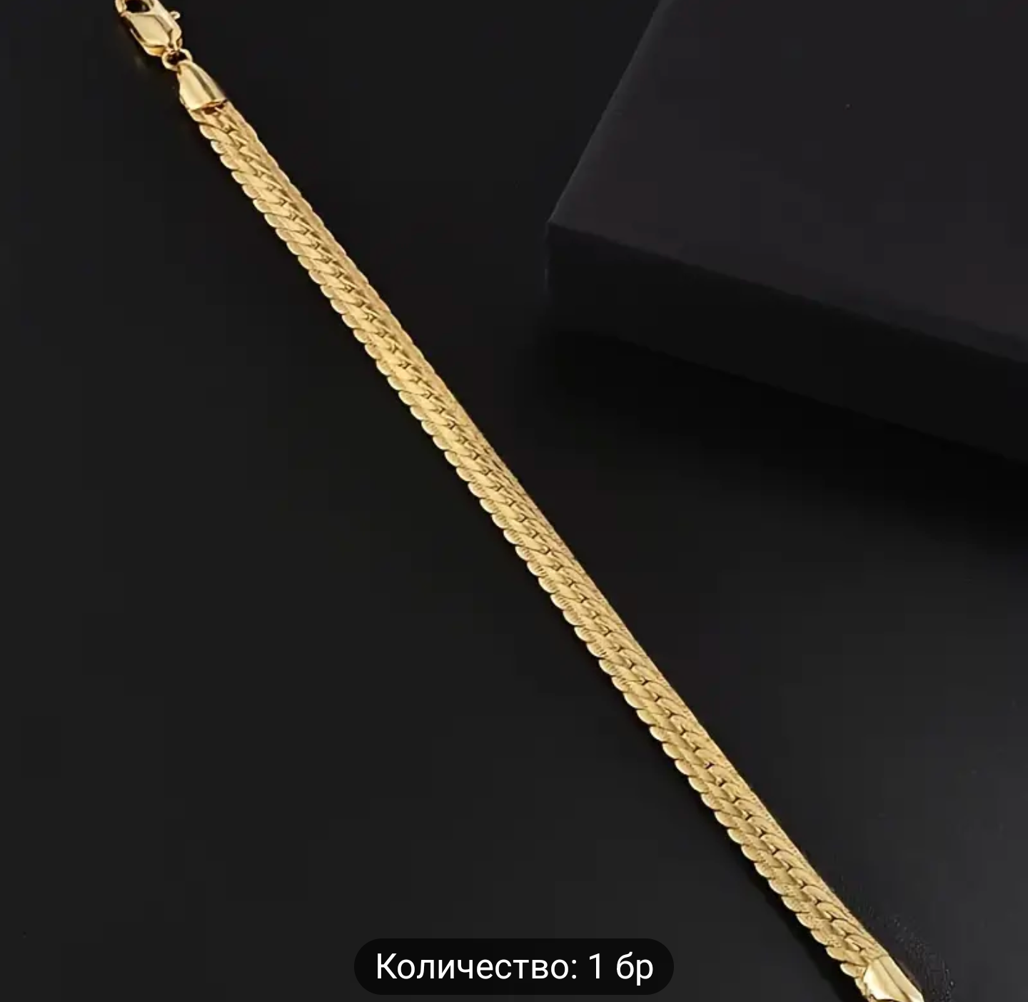 Гривната е изработена от медицинско злато (медицинска стомана) Нова! Не променя цвета си. Предлага се 18 см дължина и 20 см .