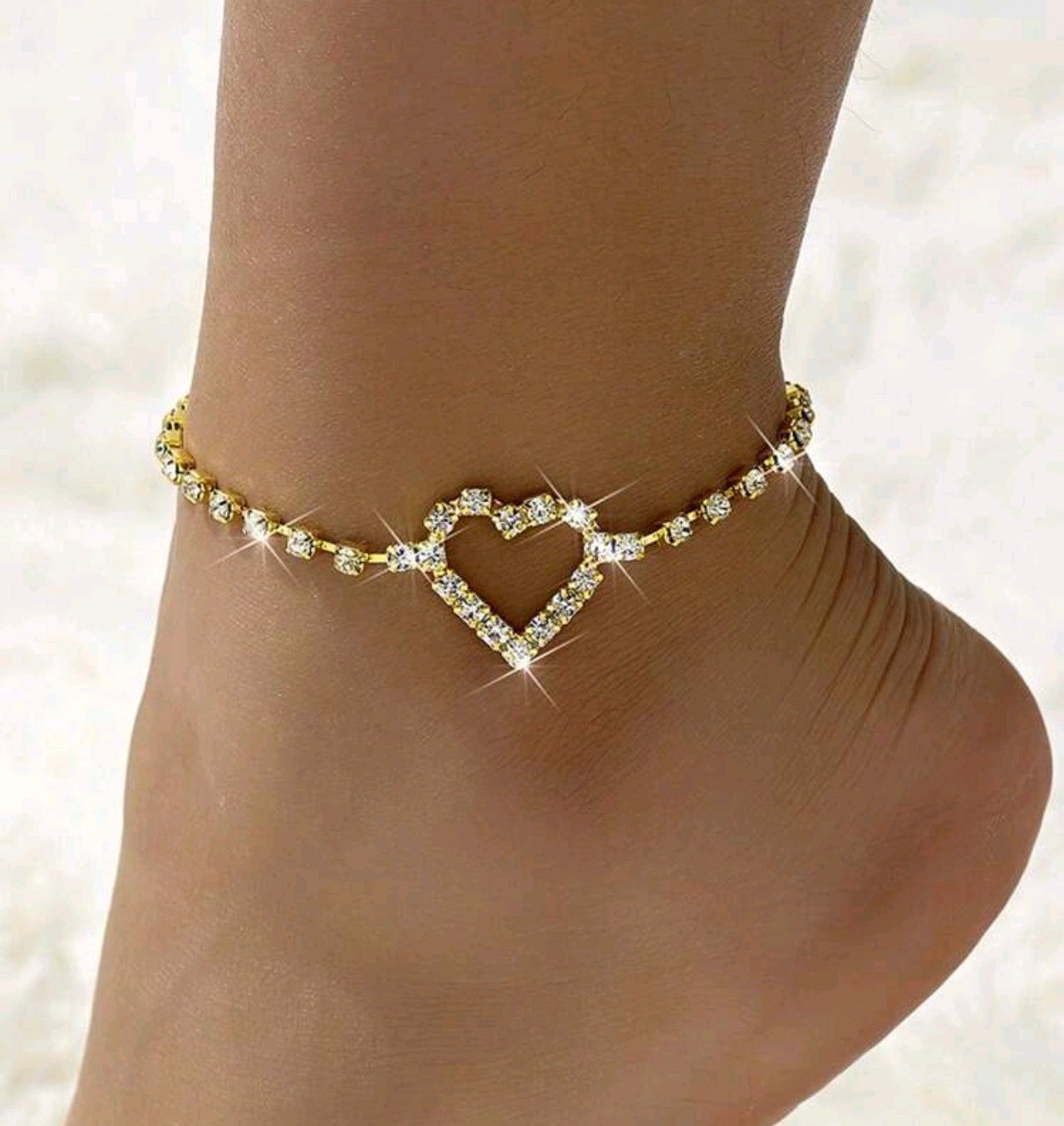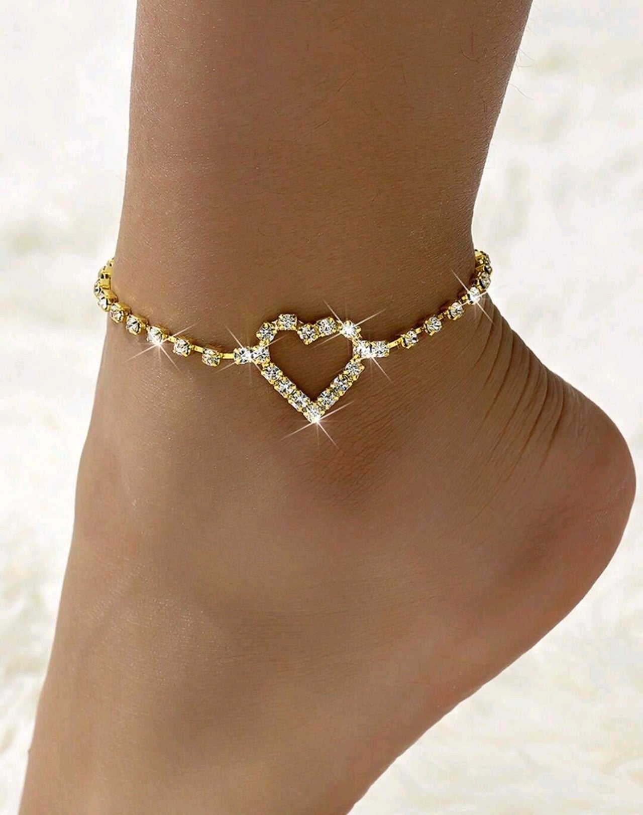 Златна дамска гривна за крак (глезен) със сърчице. Обява номер 76