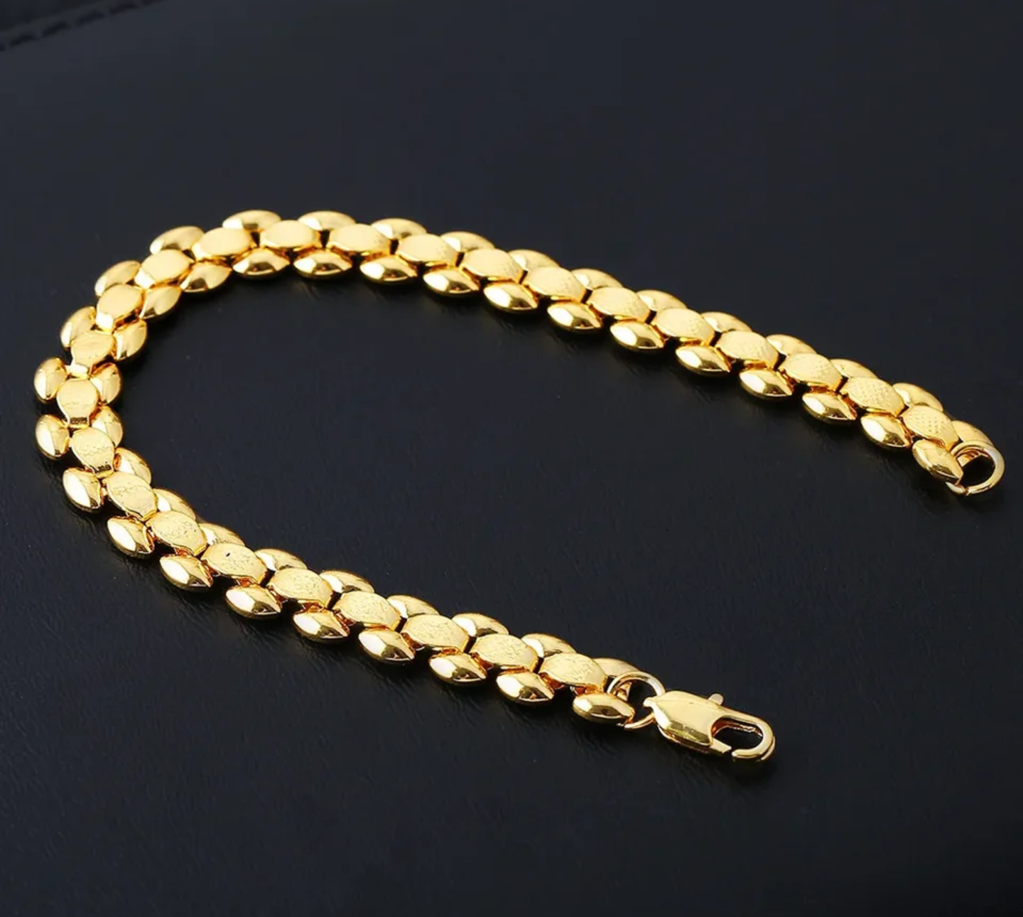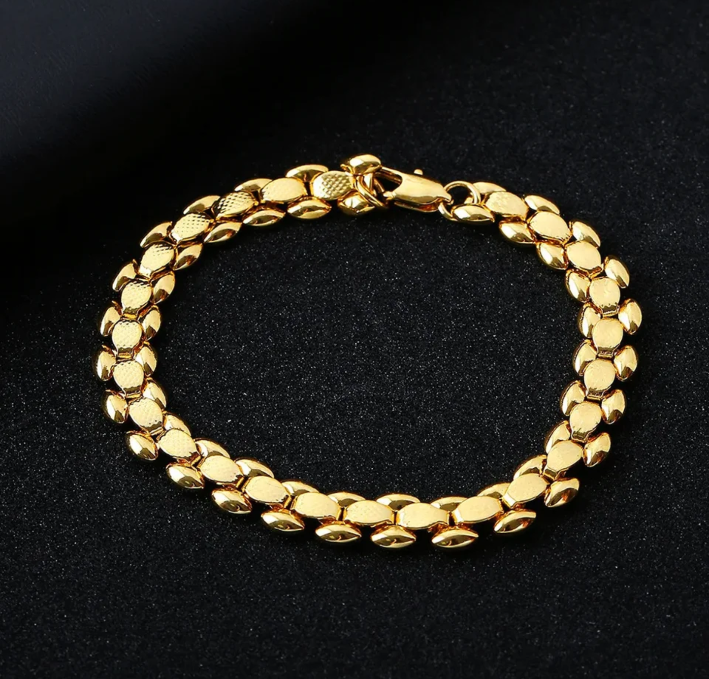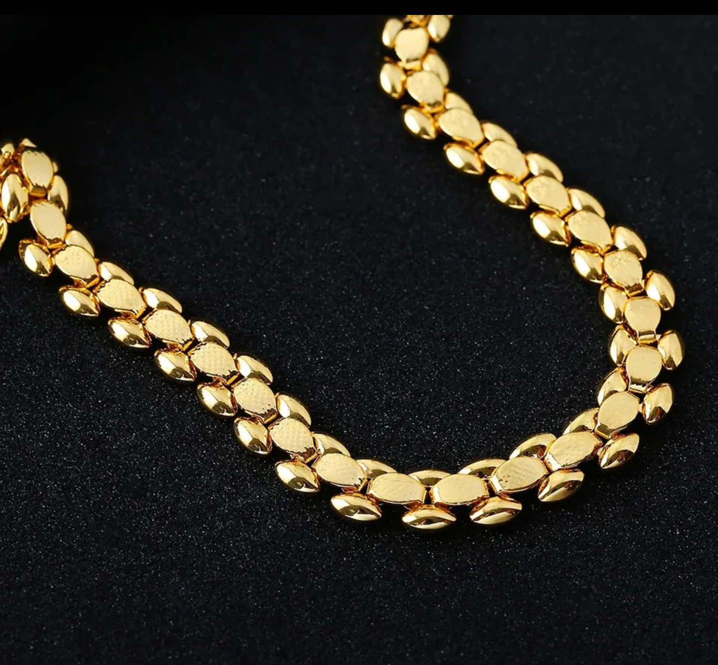 Гривната е нова изработена от медицинско злато. Не променя цвета си. Страхотна алтернатива на супер скъпото злато!