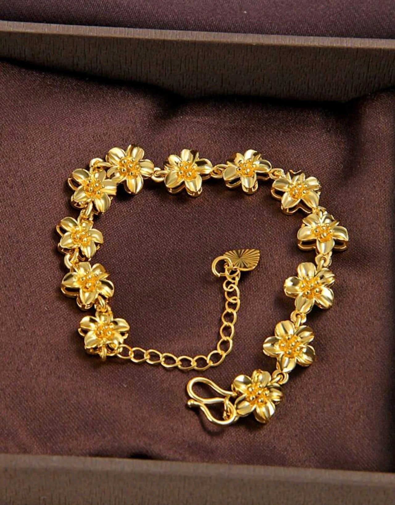 Златна дамска гривна с цветчета