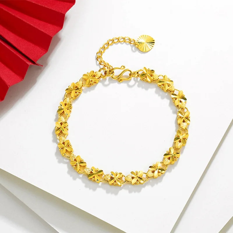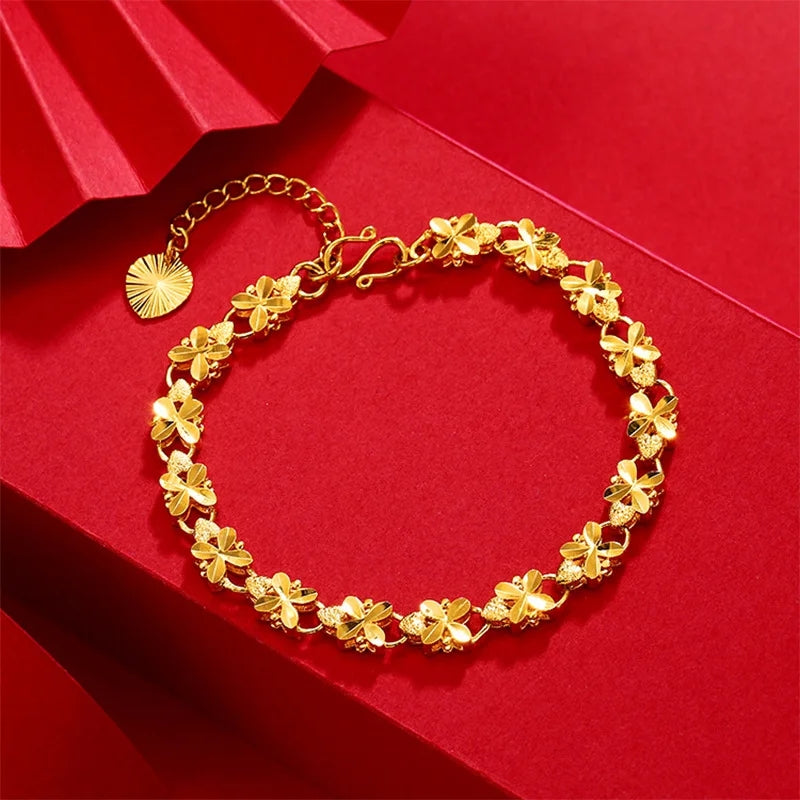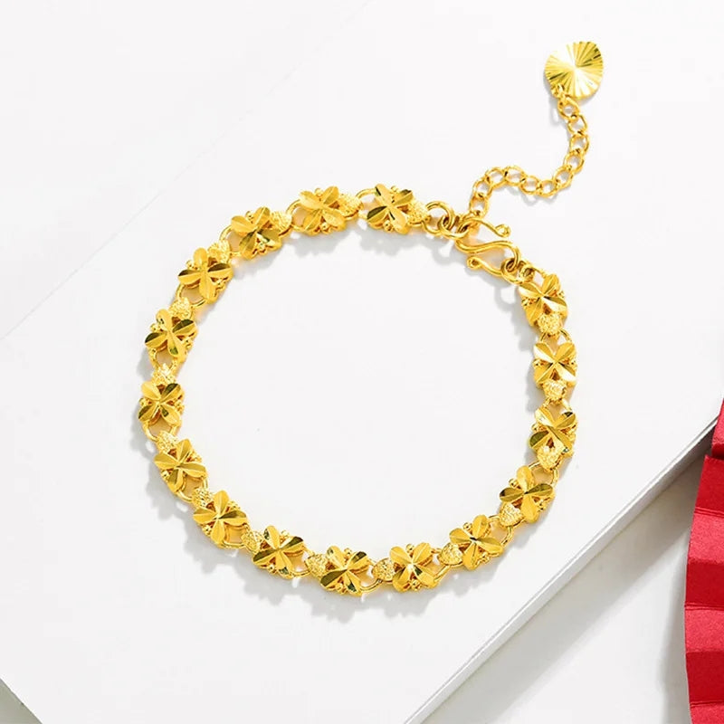 Златна дамска гривна с цветя. Изработена от медицинско злато. Не променя цвета си. Нова ! Регулируема дължина от 17-20 см .