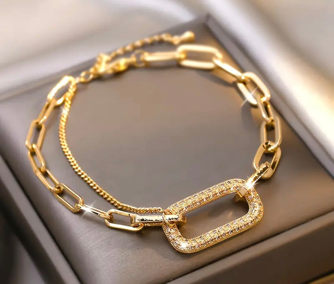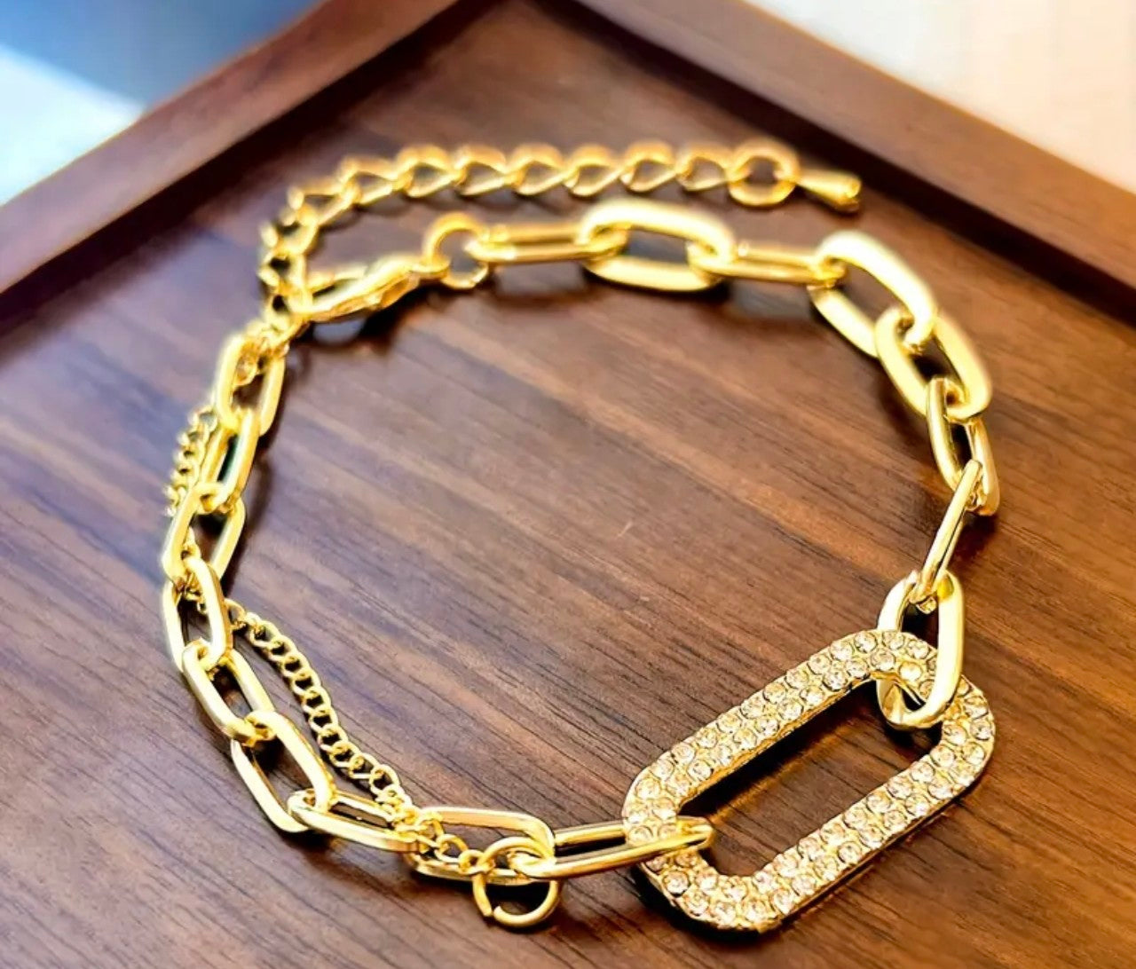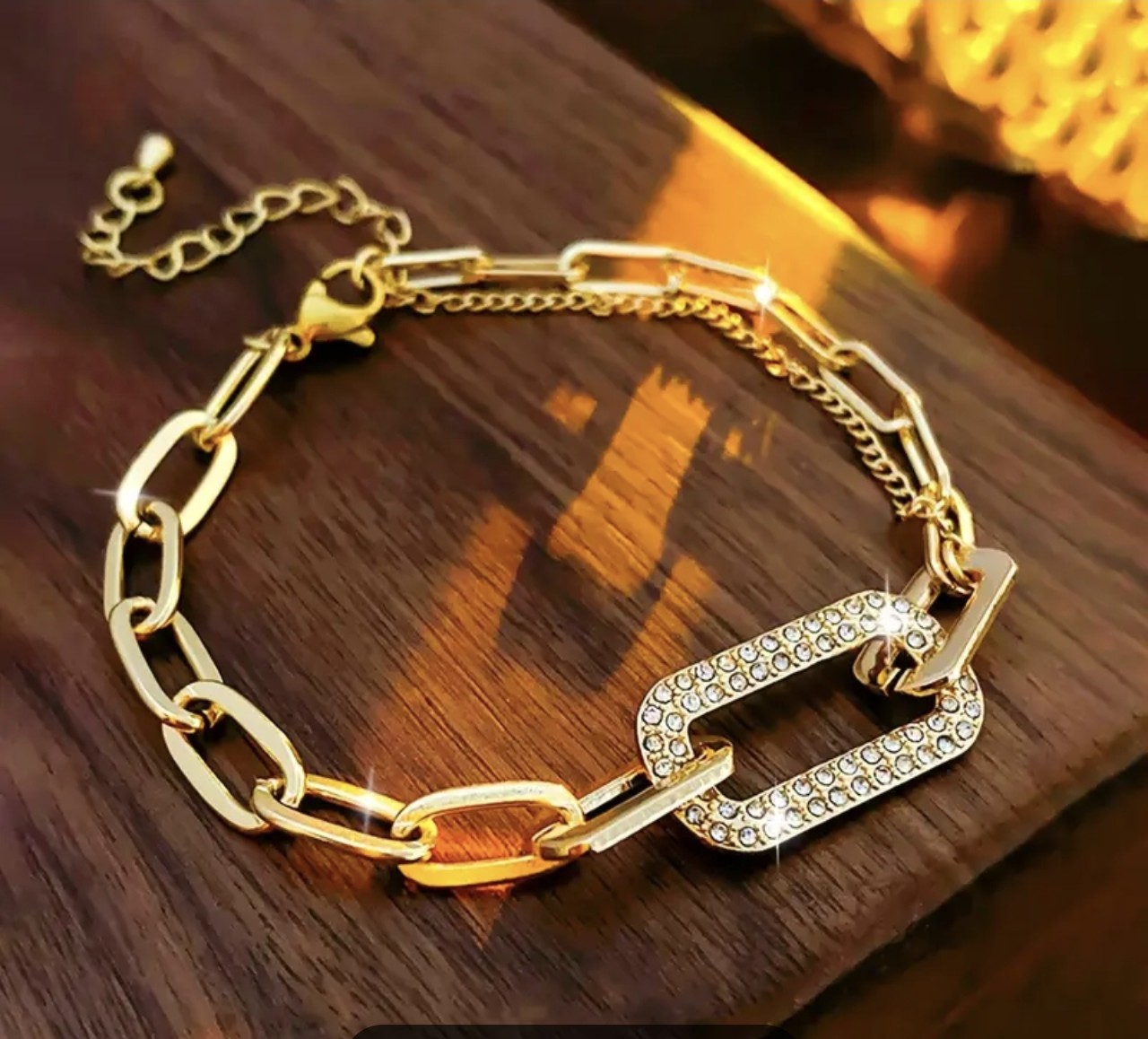 Изработена е от медицинско злато и не променят цвета си. Страхотна евтина алтернатива на супер скъпото злато днешни дни. Регулируема дължина от 15 до 22 см!