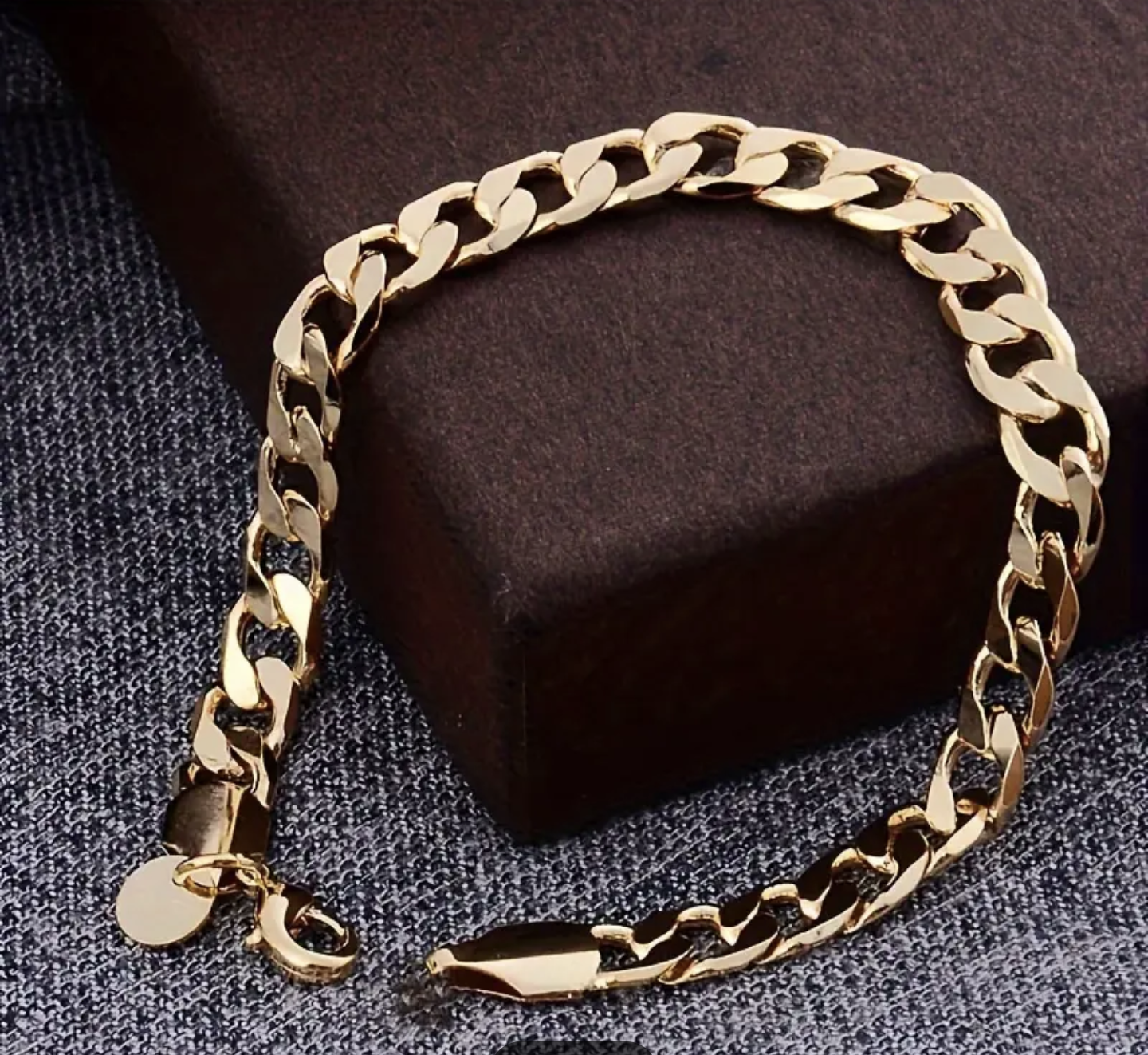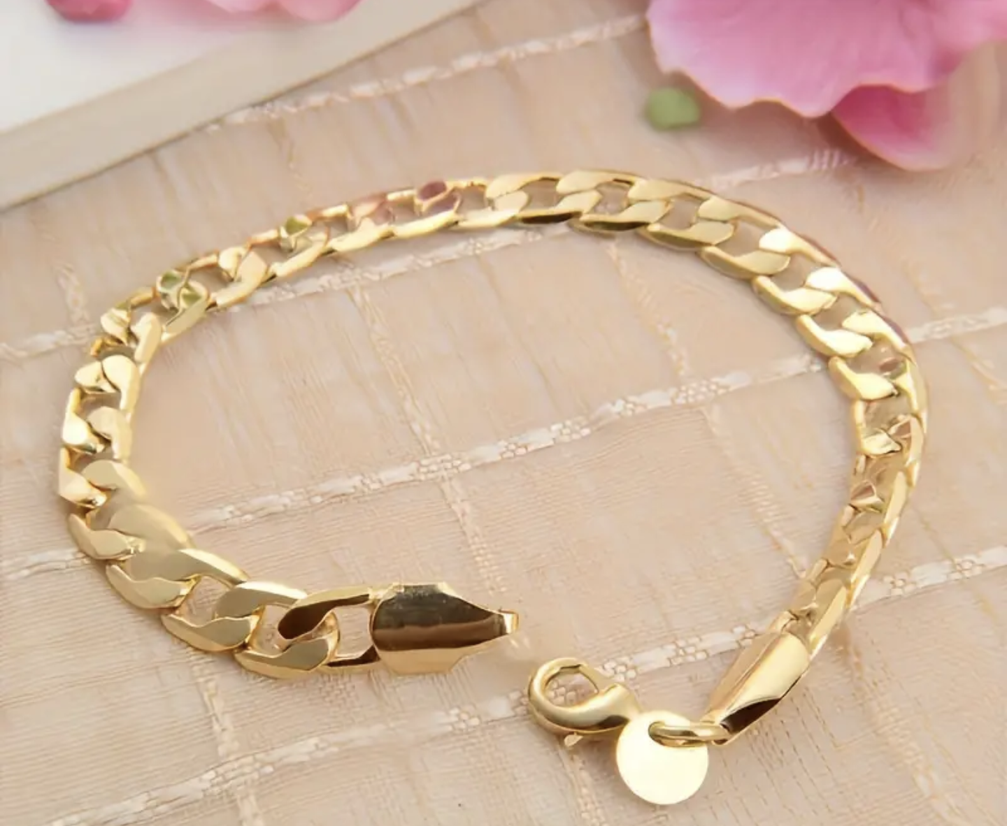 Гривната е изработена от медицинско злато (медицинска стомана) нова ! Не си мени цвета при мокрене и носене. Страхотна алтернатива на златото на 100 пъти по-ниска цена! 23 см 26 грама.