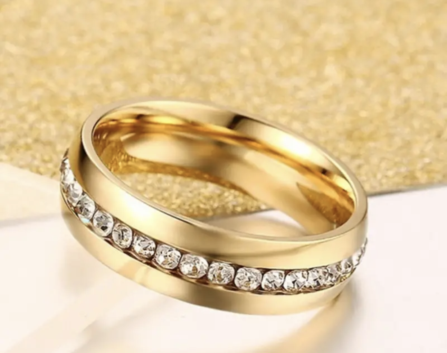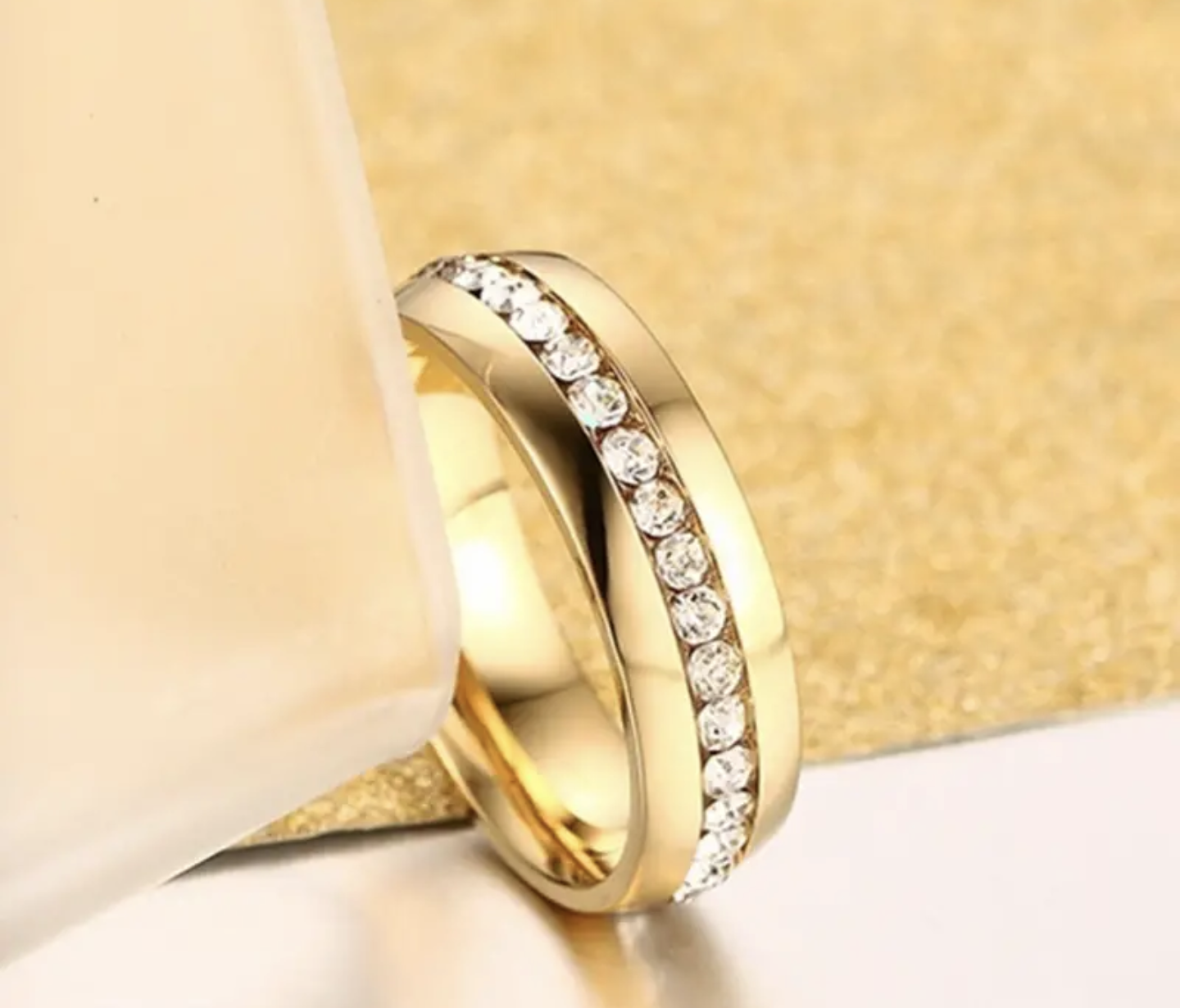 Златна халка с диаманти (цирконии) изработка от медицинско злато. Не променя цвета си. Имаме размери
