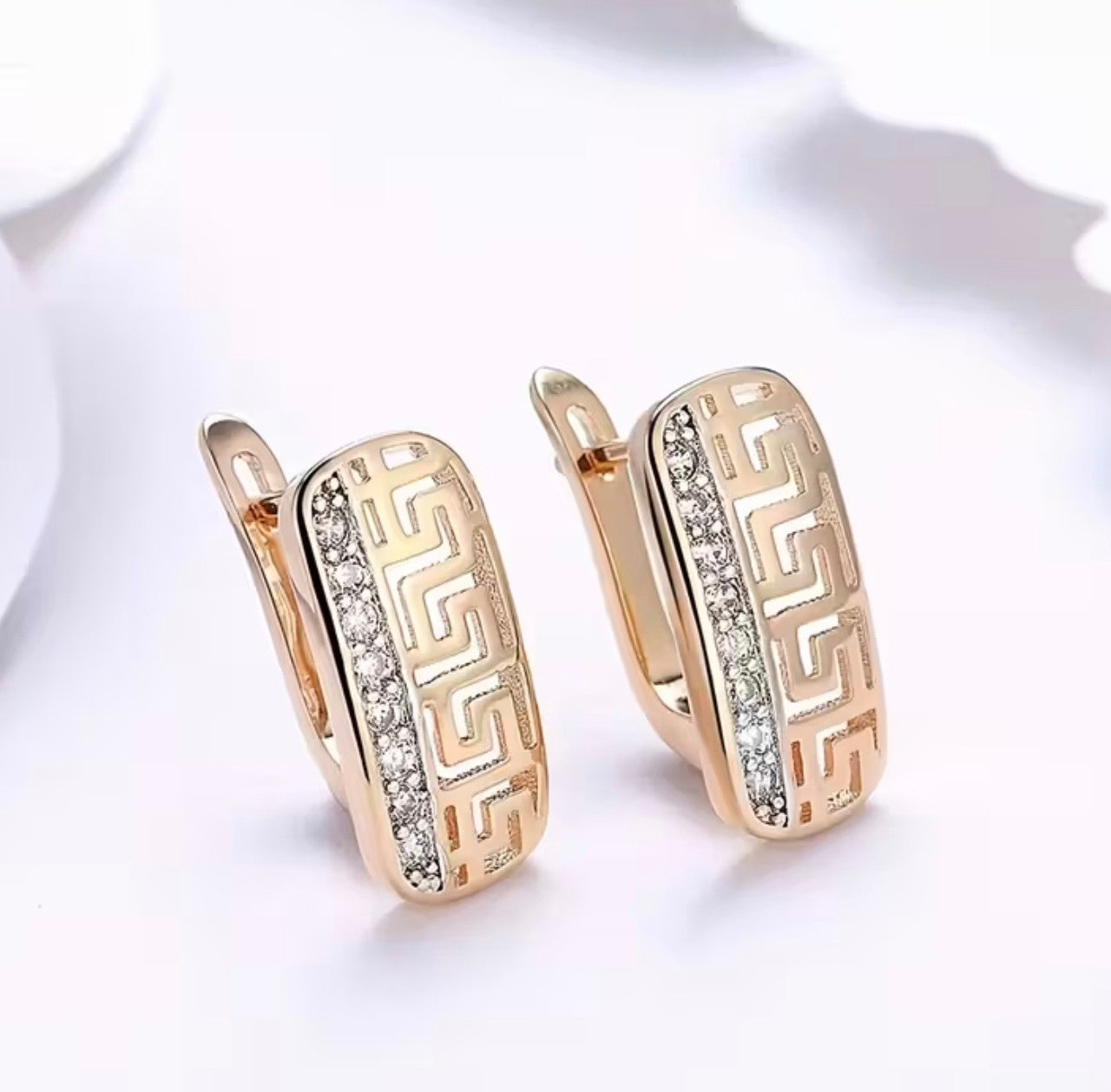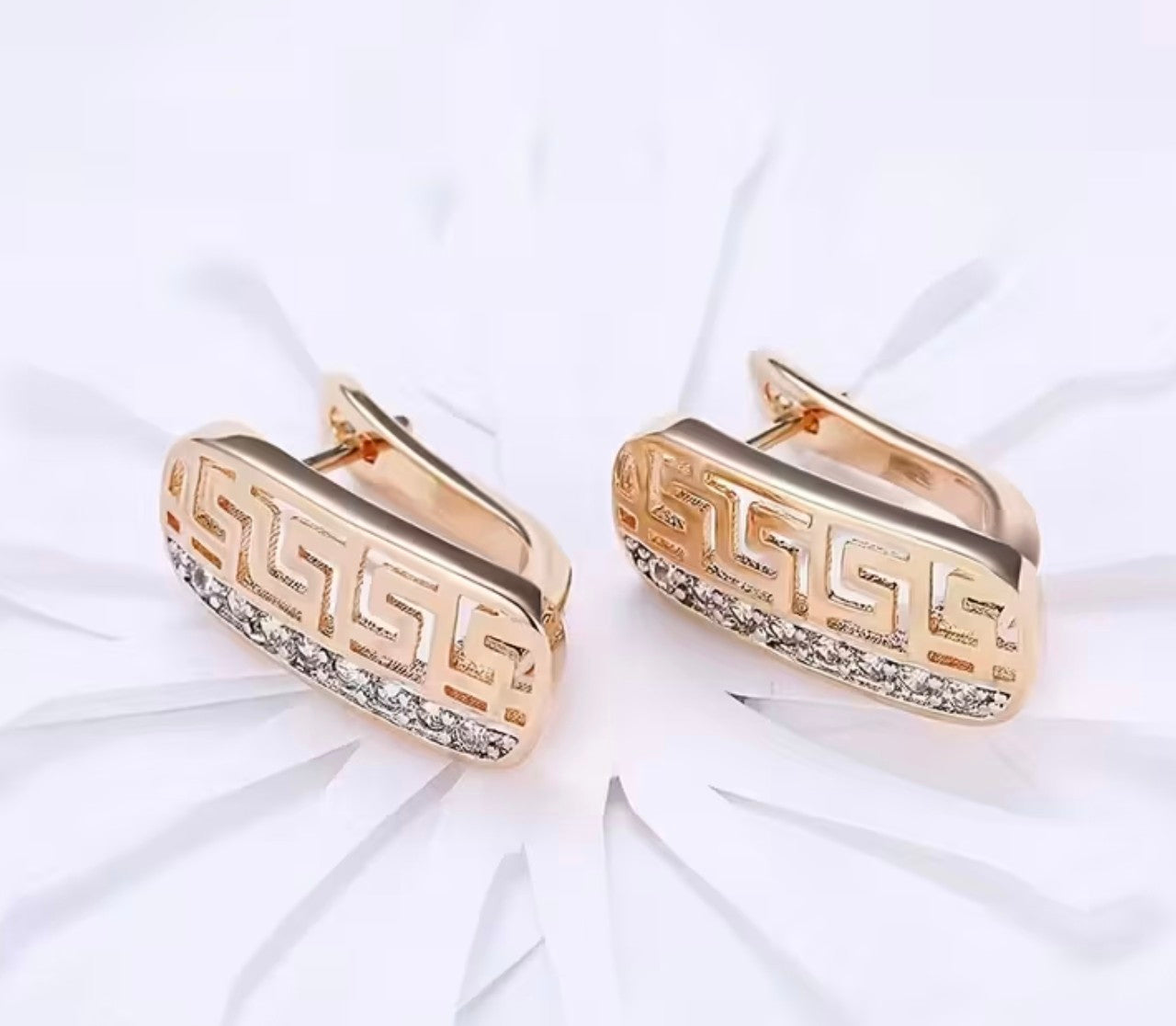 Златни дамски обеци гръцка шарка