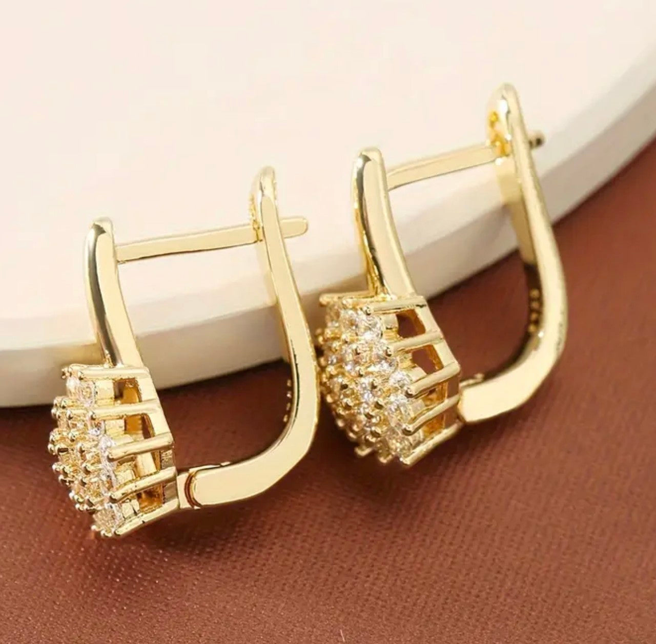Златни дамски обеци кошнички с цирконии. Обява номер 72