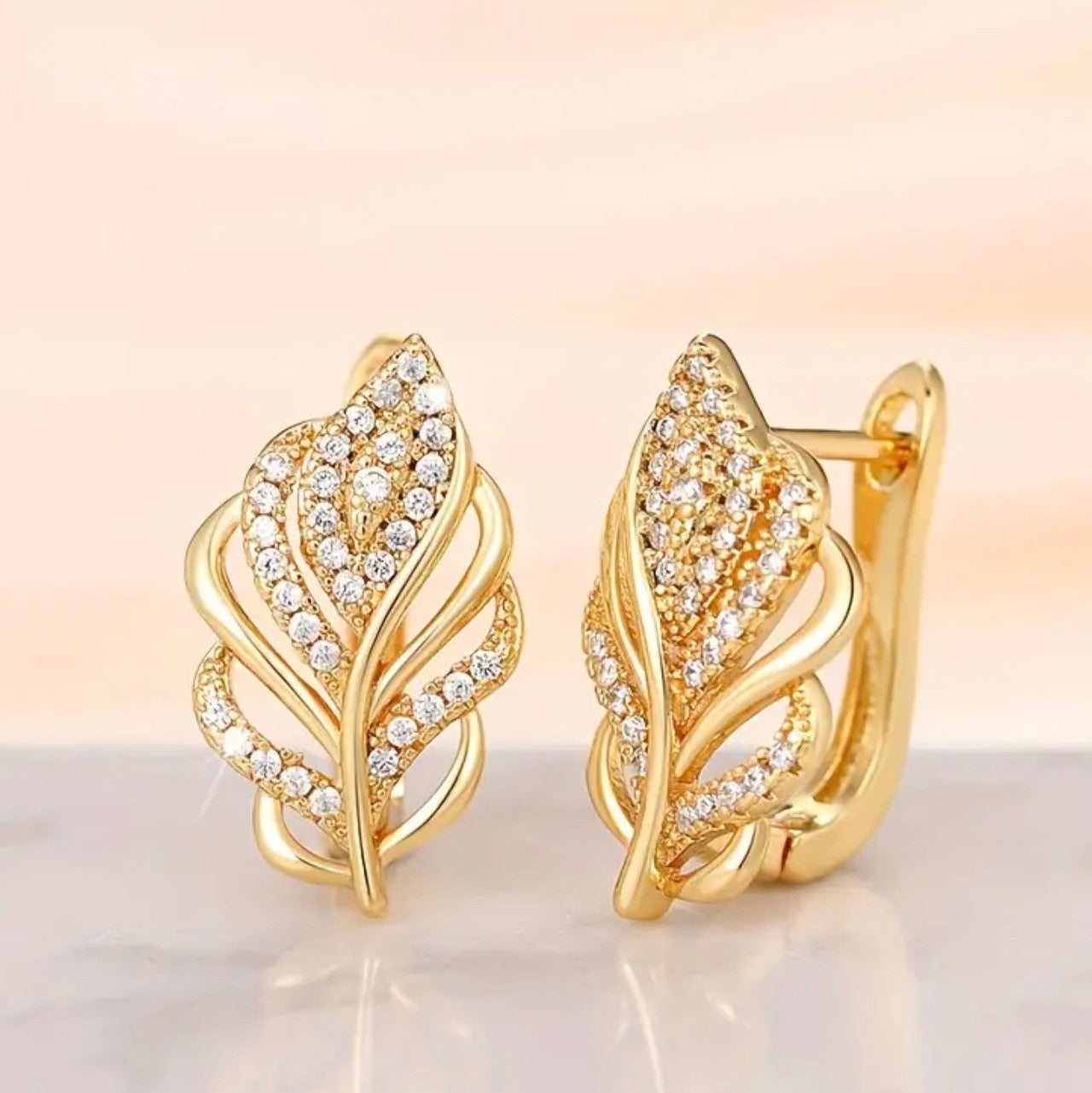 Златни дамски обеци перо