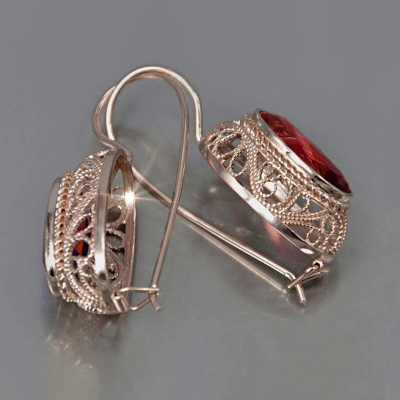 Обеците са нови изработени от медицинско злато и не предизвикват алергия и не променят цвета си. Красив червен рубин. .