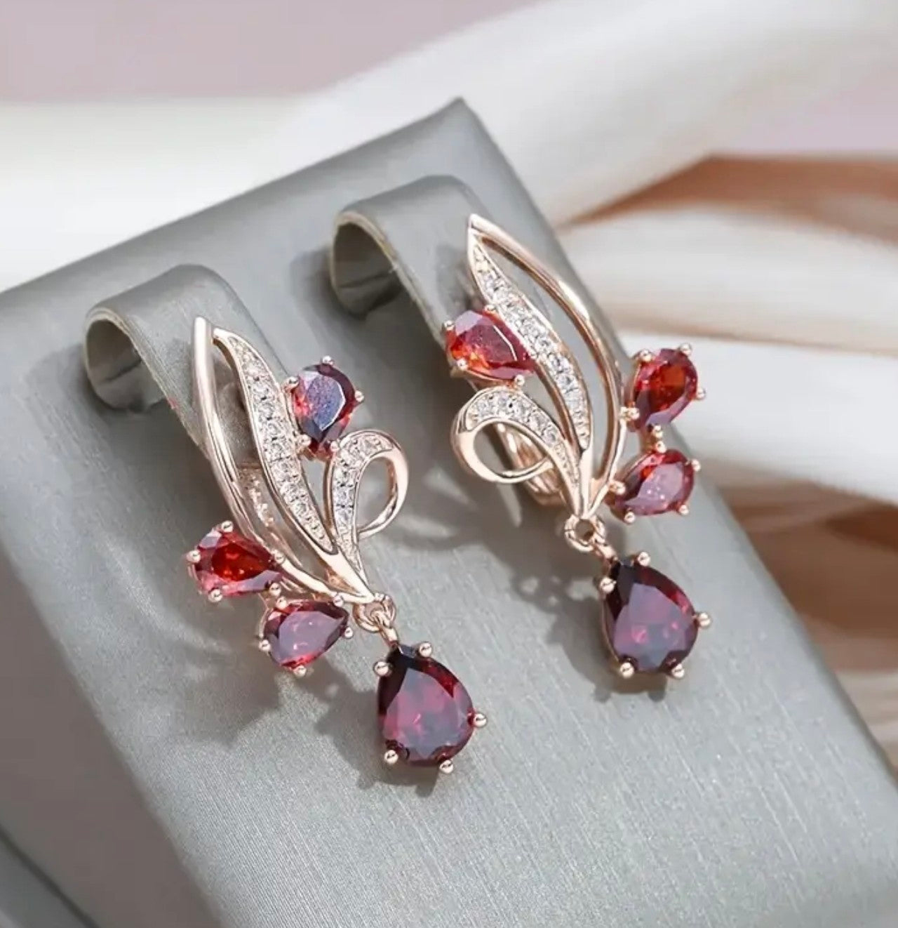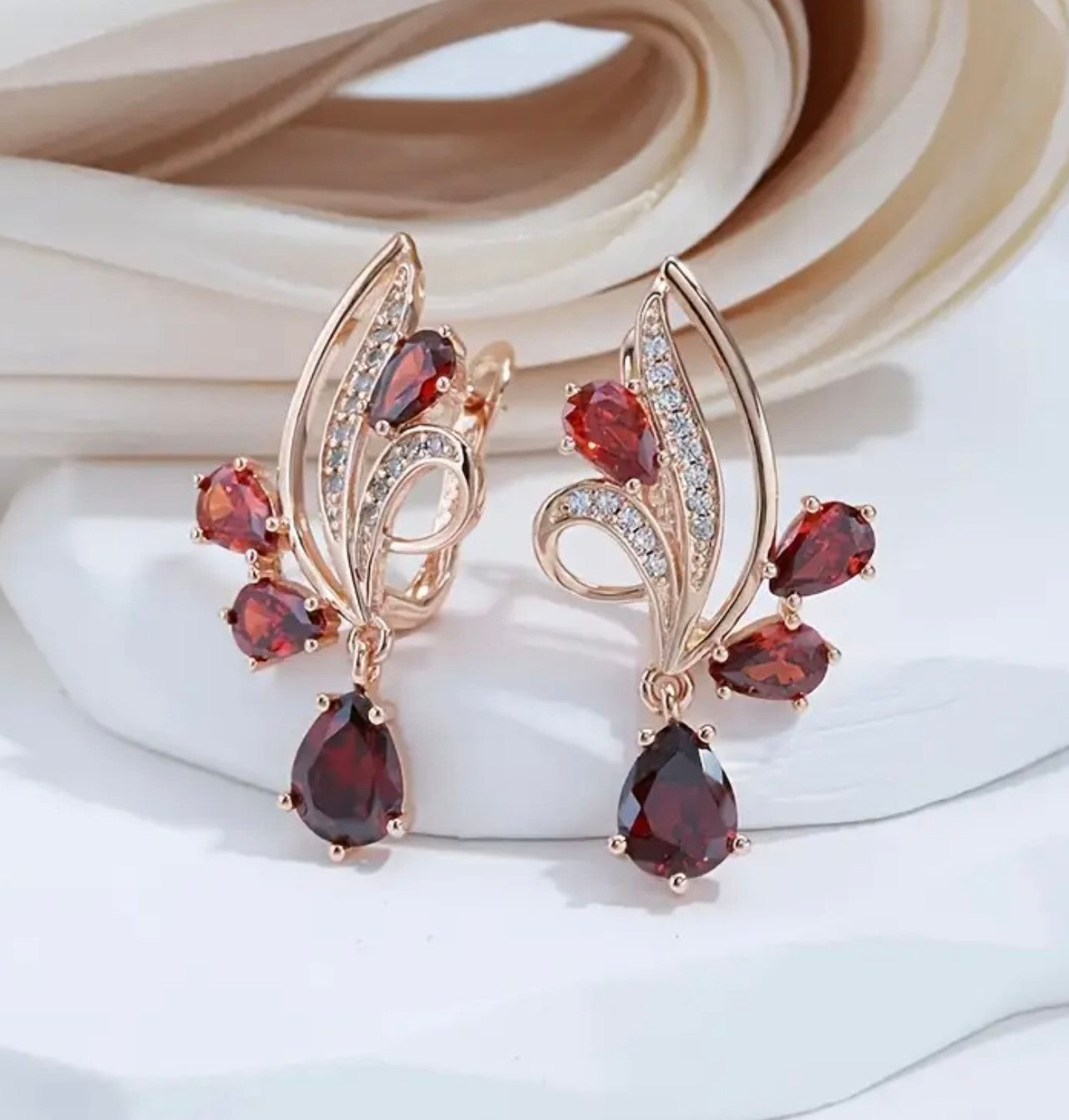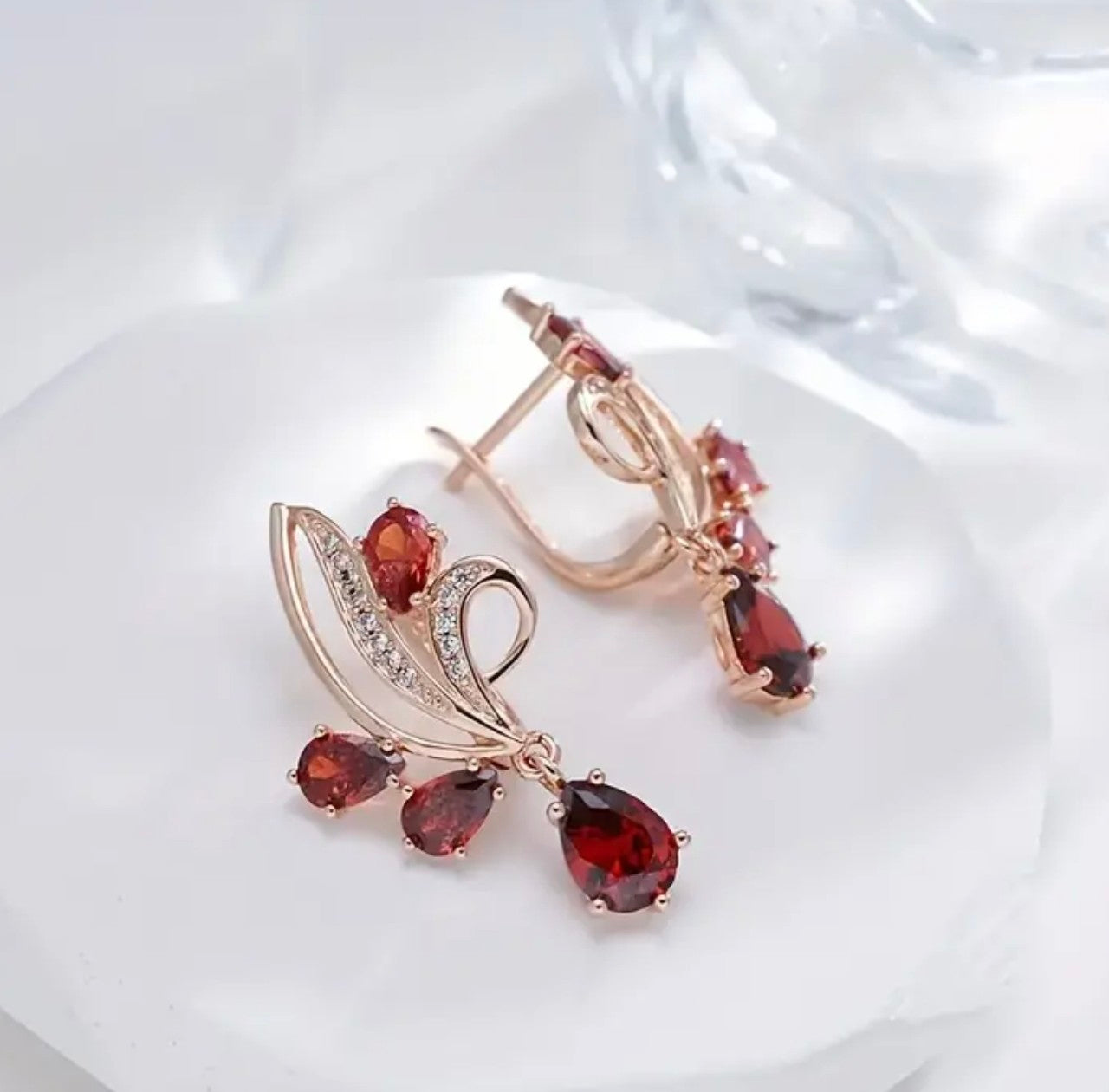 Златни дамски обеци „Червен пламък“ обява номер 200