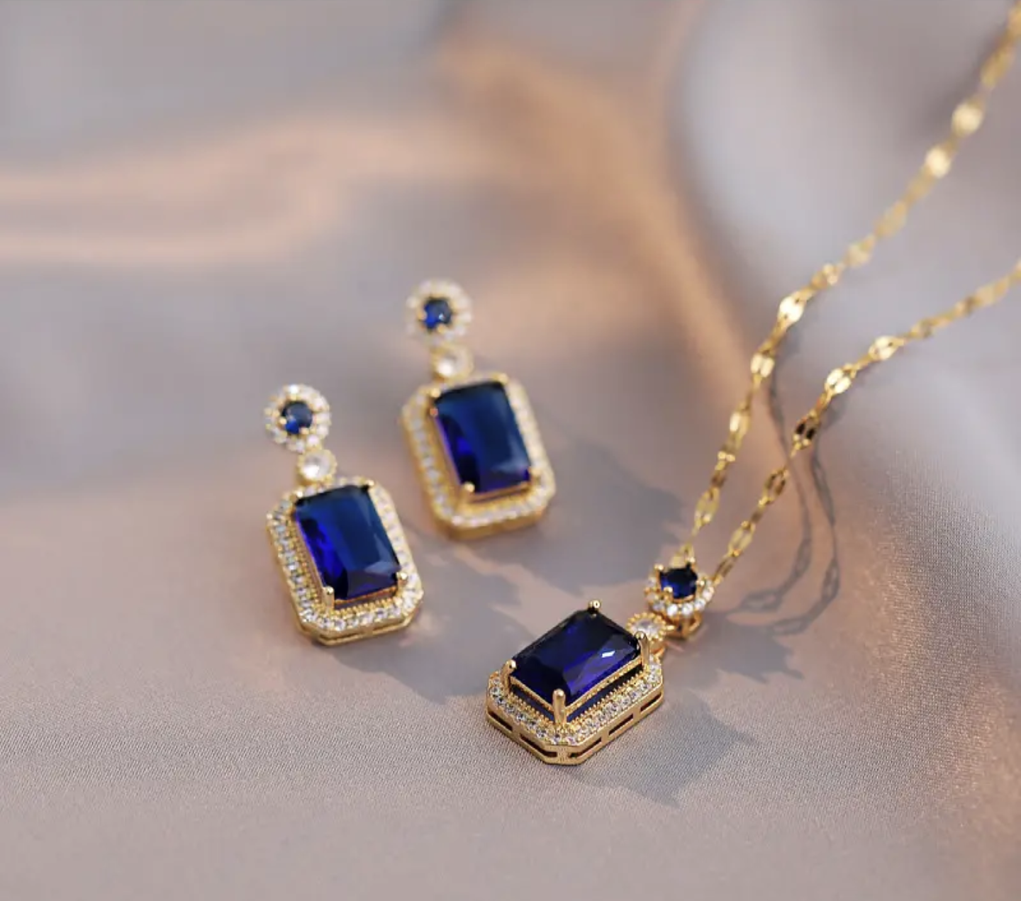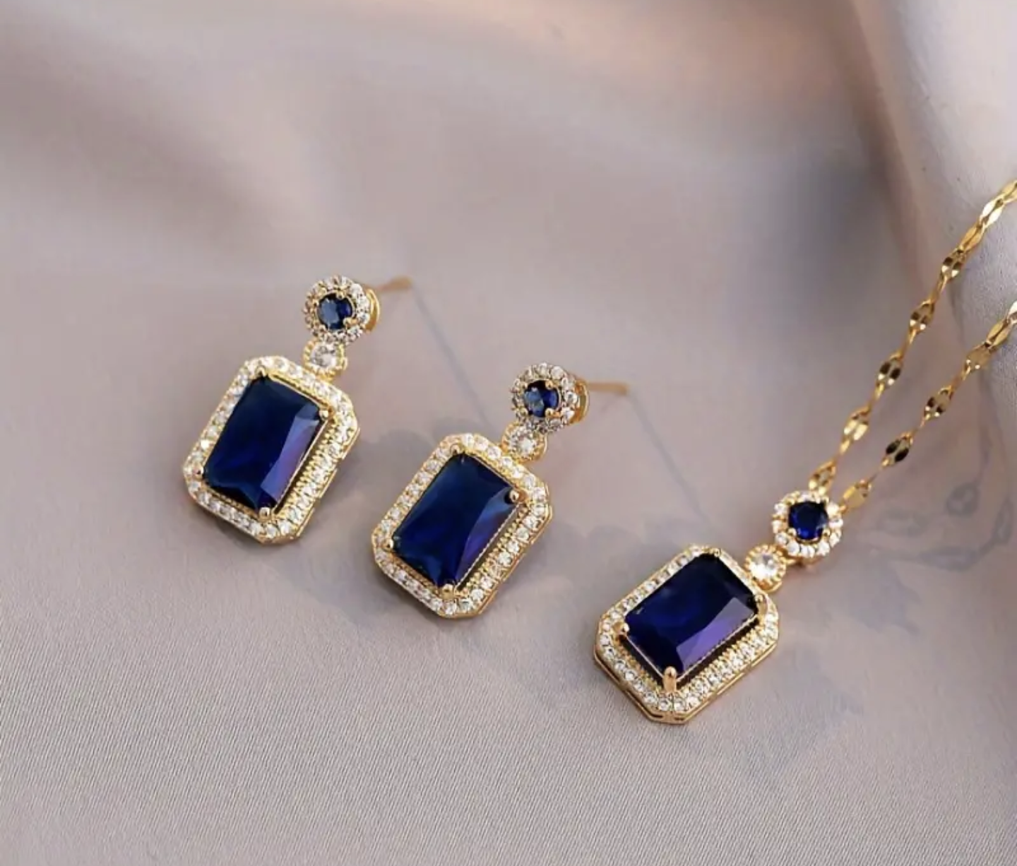 Здравейте предлагани ви страхотен комплект дамско колие и обеци изработени от медицинско злато. Не променят цвета си и не предизвикват алергия.
