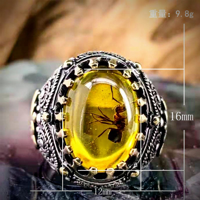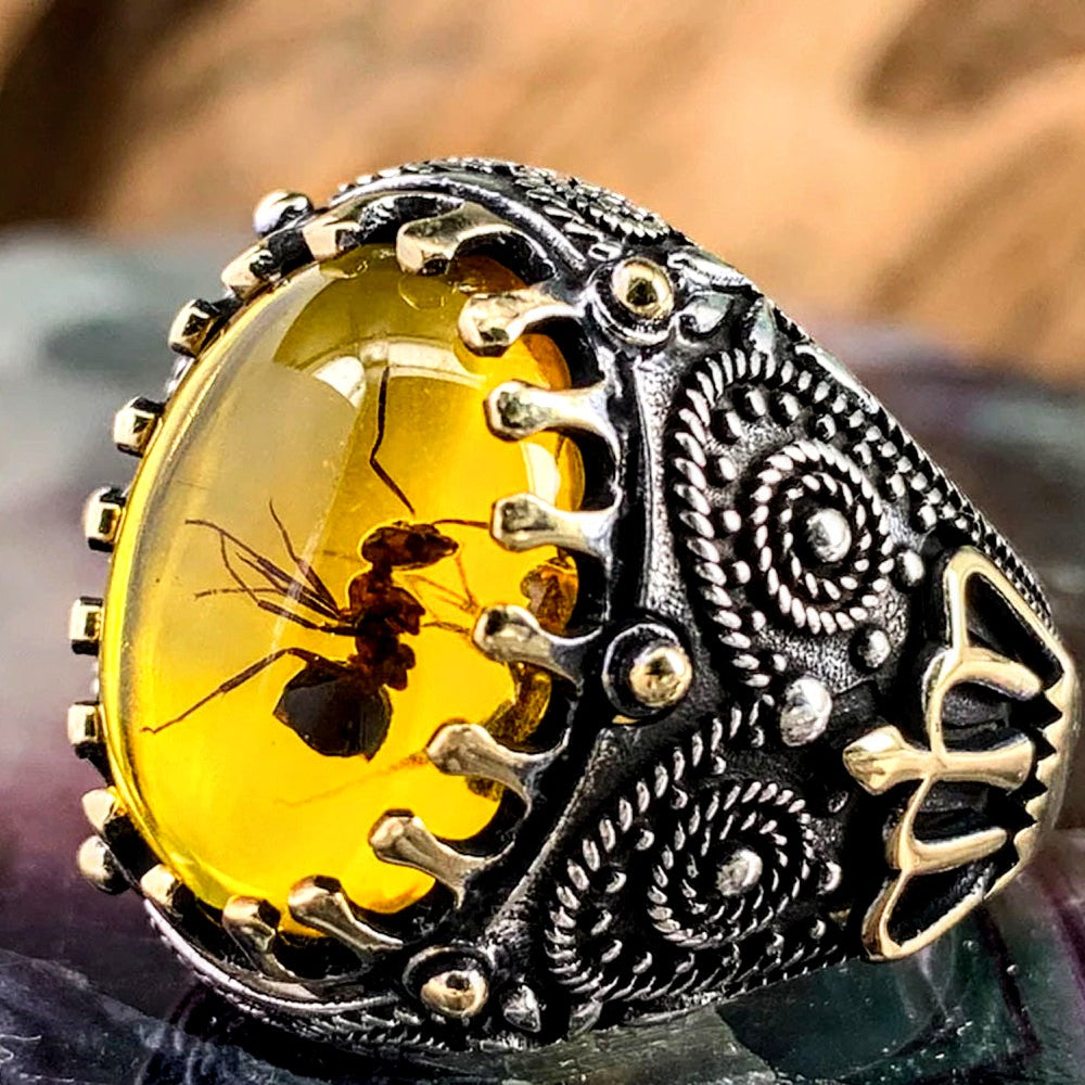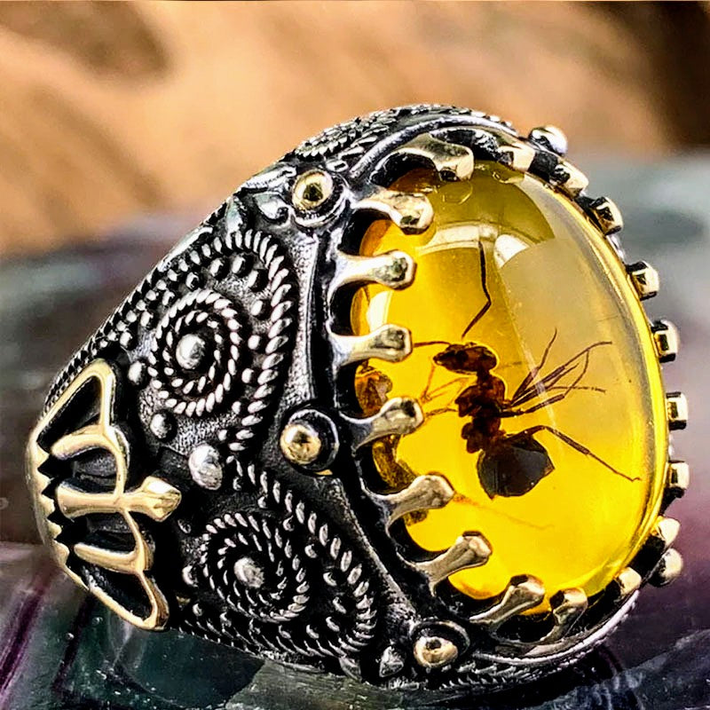 Кехлибарен пръстен с вградена истинска мравка