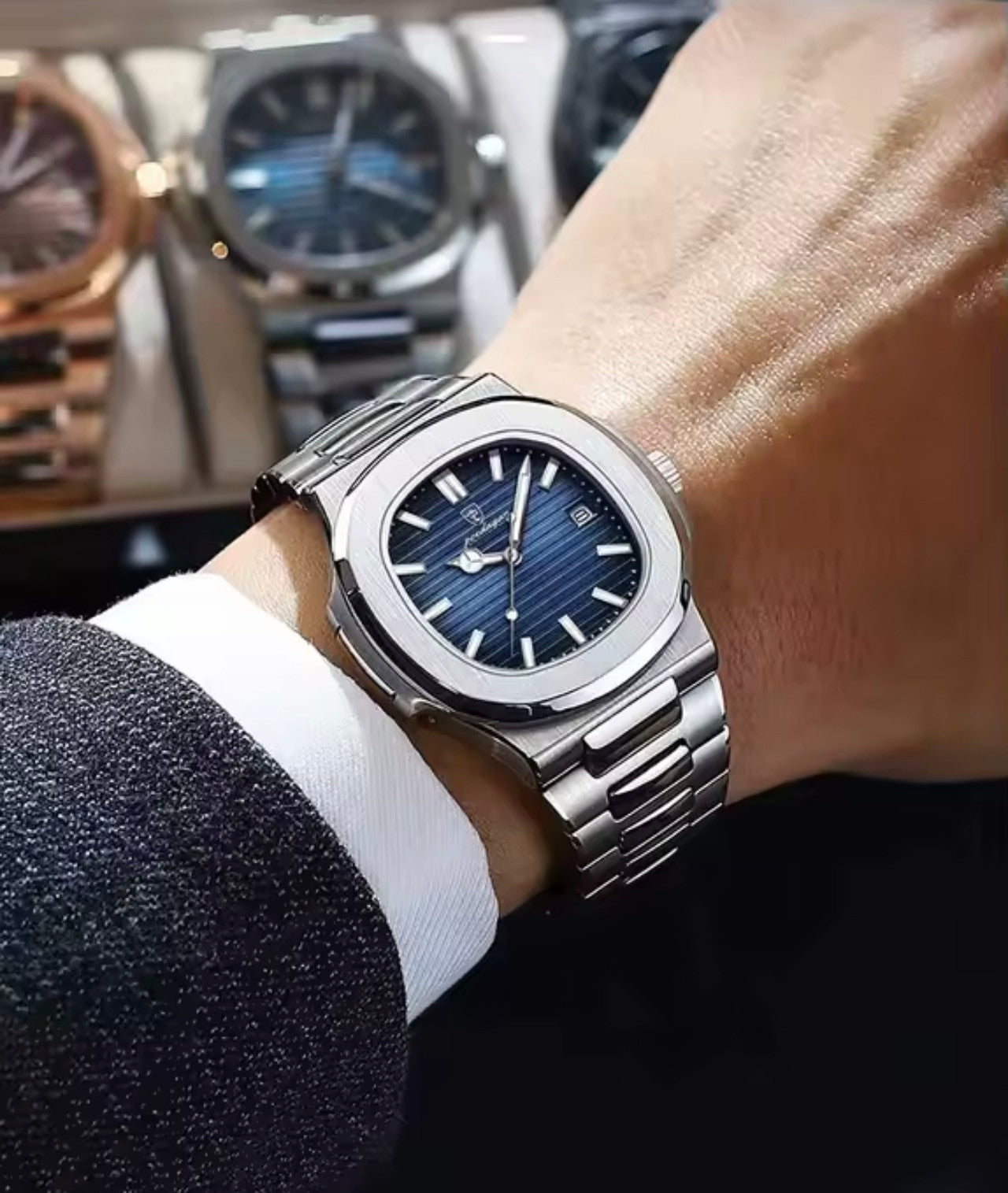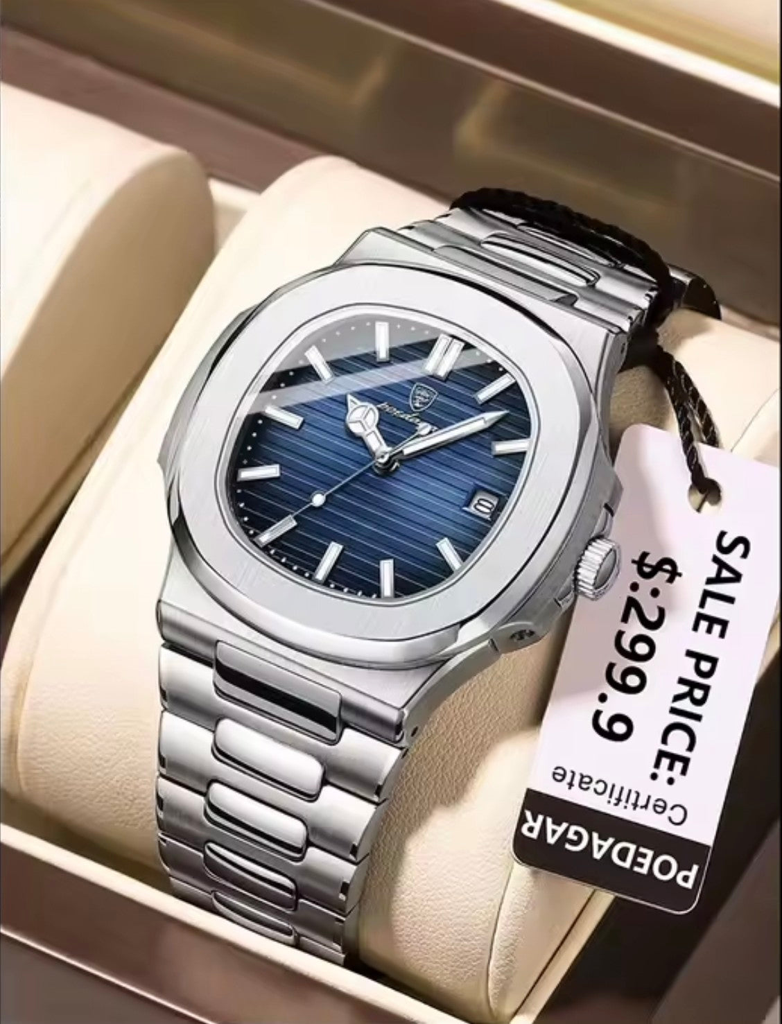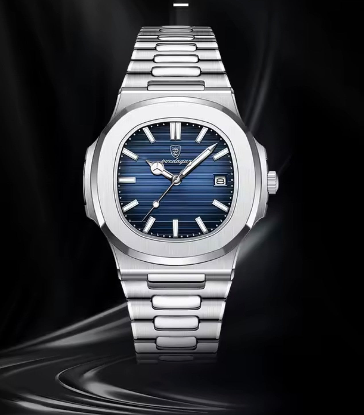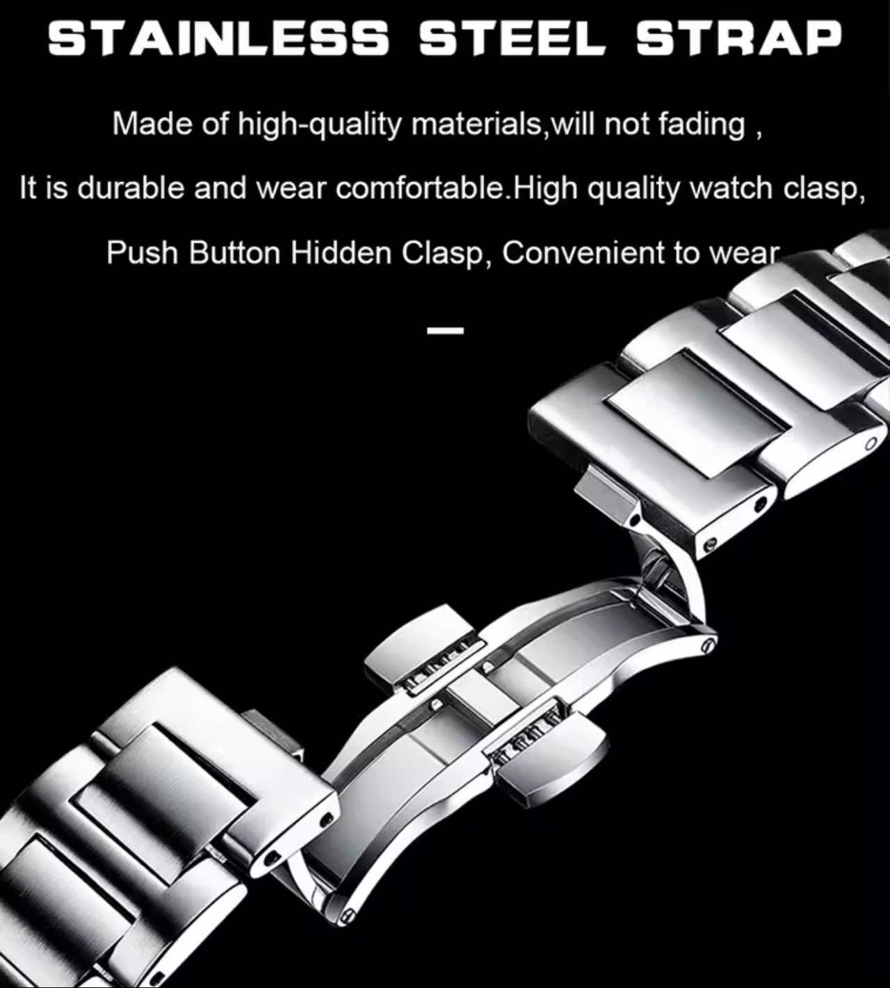 Часовника е нов висок клас със стоманено шаси. Водоустойчив 7 бара! Регулируема двойна верижка висок клас супер удобна. Идва в подаръчна кутийка с механизъм за оразмеряване на верижаката. Има фосфорен циферблат светещ в тъмното и още много екстри. Страхотен часовник за цената си! Циферблата е защитен от закалено стъкло!
