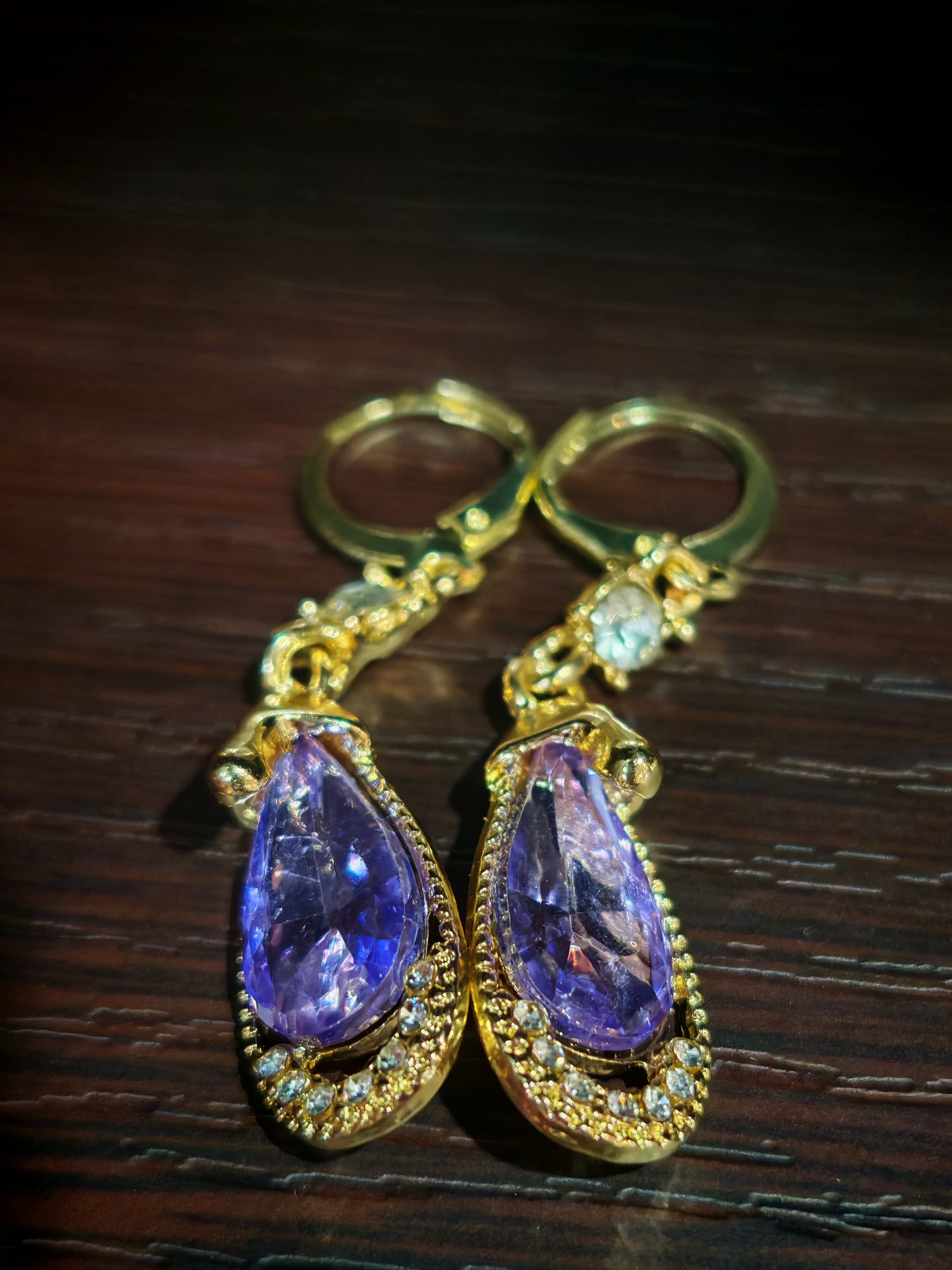 Луксозни дамски обеци от медицинско злато с лилав кристал – „Кралица на нощта“