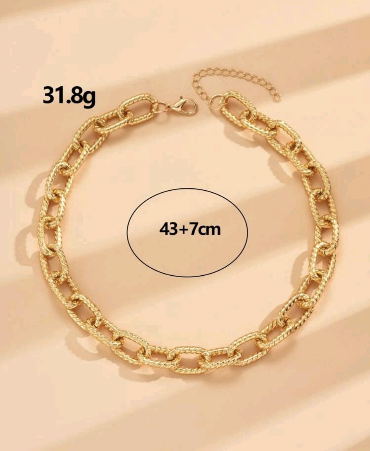 Ланеца е изработен от медицинско злато и не променят цвета си може да се мокри. Олекотен е с прибавено удължение за регулируемо закопчаване. Може да се нагласи както ви е удобно.