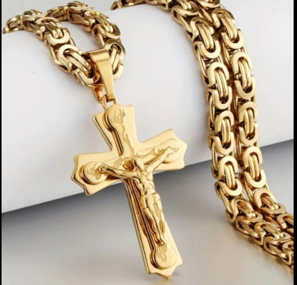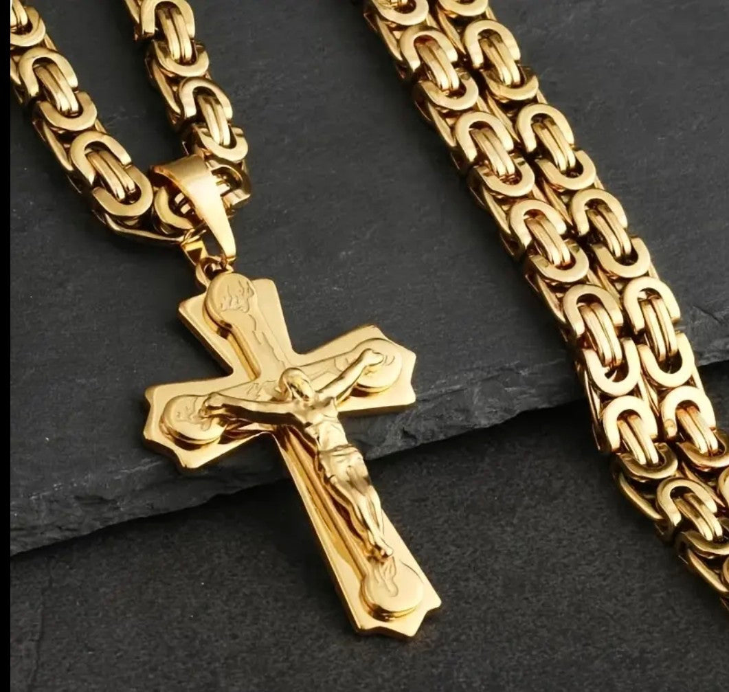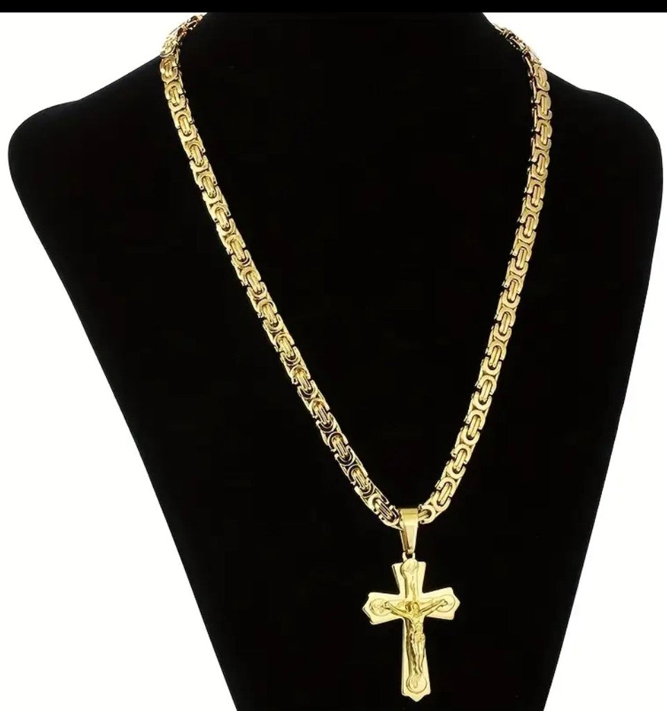 Масивен златен ланец змийска плетка с висулка кръст. Обява 210