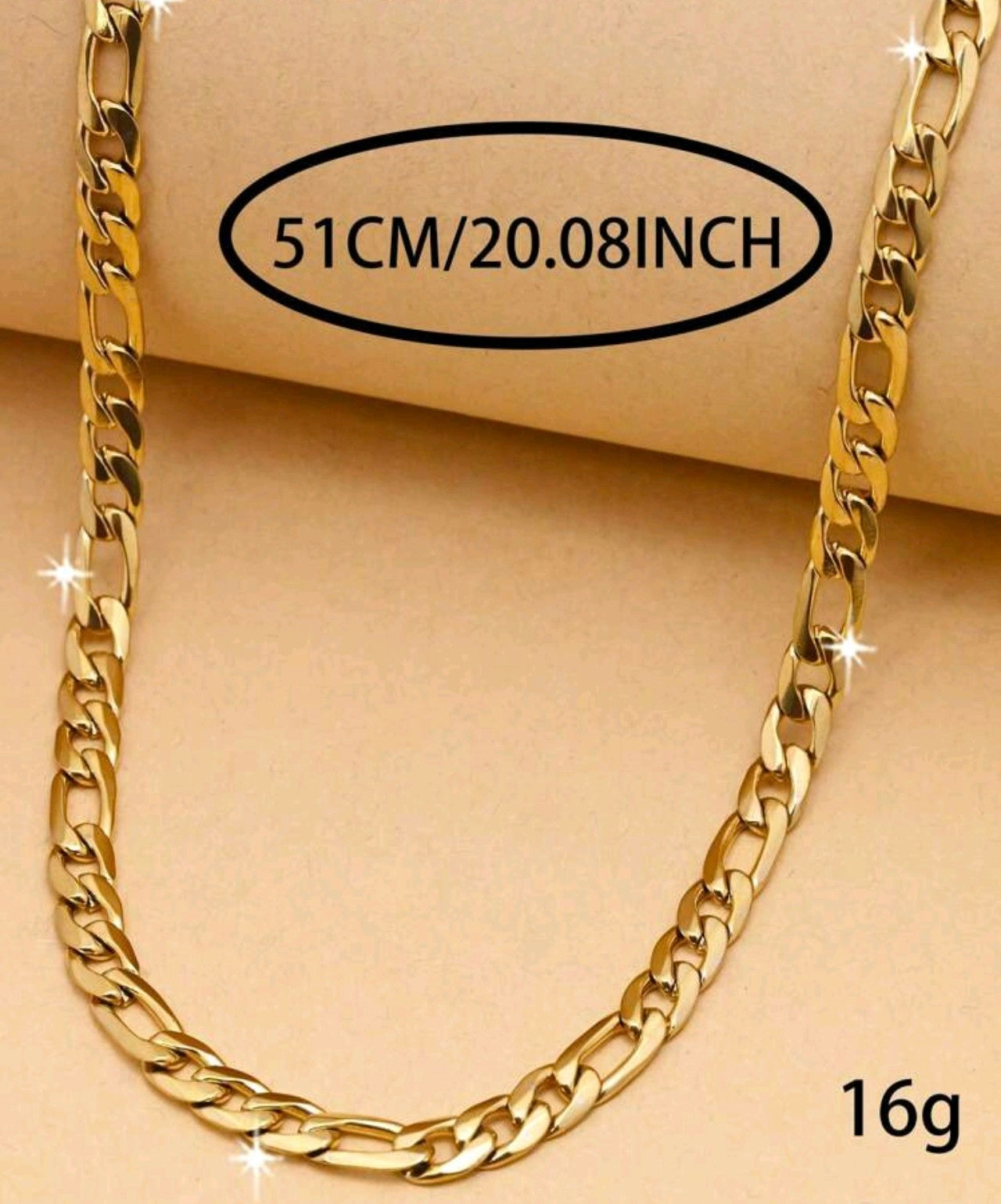 Ланеца е нов изработен е от медицинско злато и не променят цвета си. Страхотна евтина алтернатива на супер скъпото злато днешни дни. 16 грама 51сн дължина.
