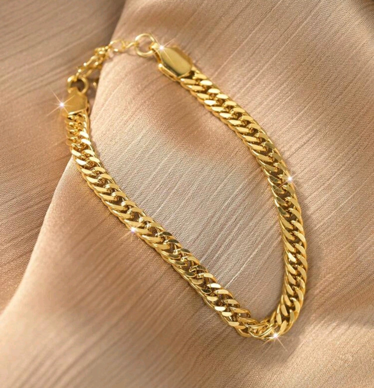 Гривната е чисто нова изработена е от медицинско злато и не променят цвета си може да се мокри. Страхотна евтина алтернатива на супер скъпото злато днешни дни.