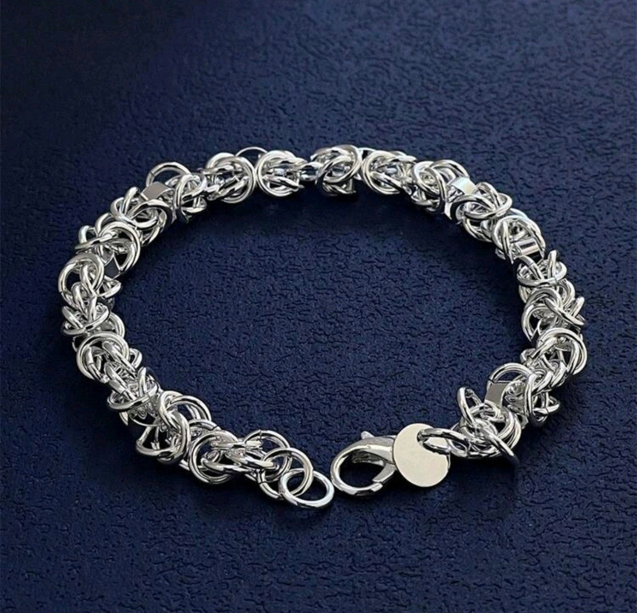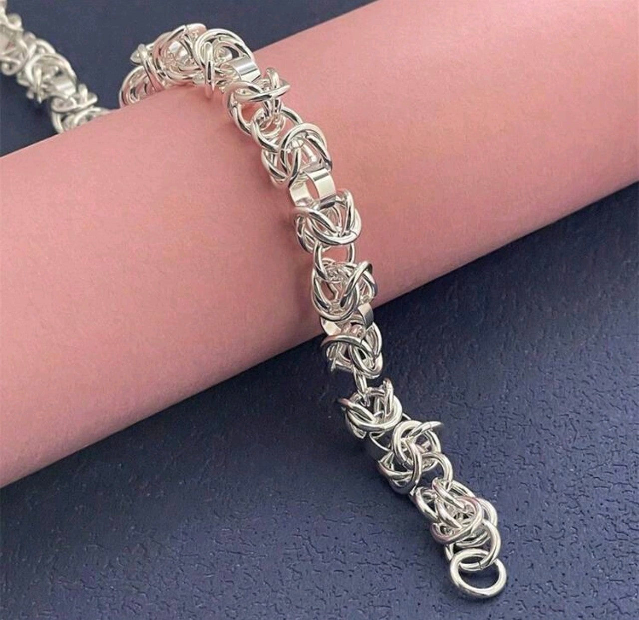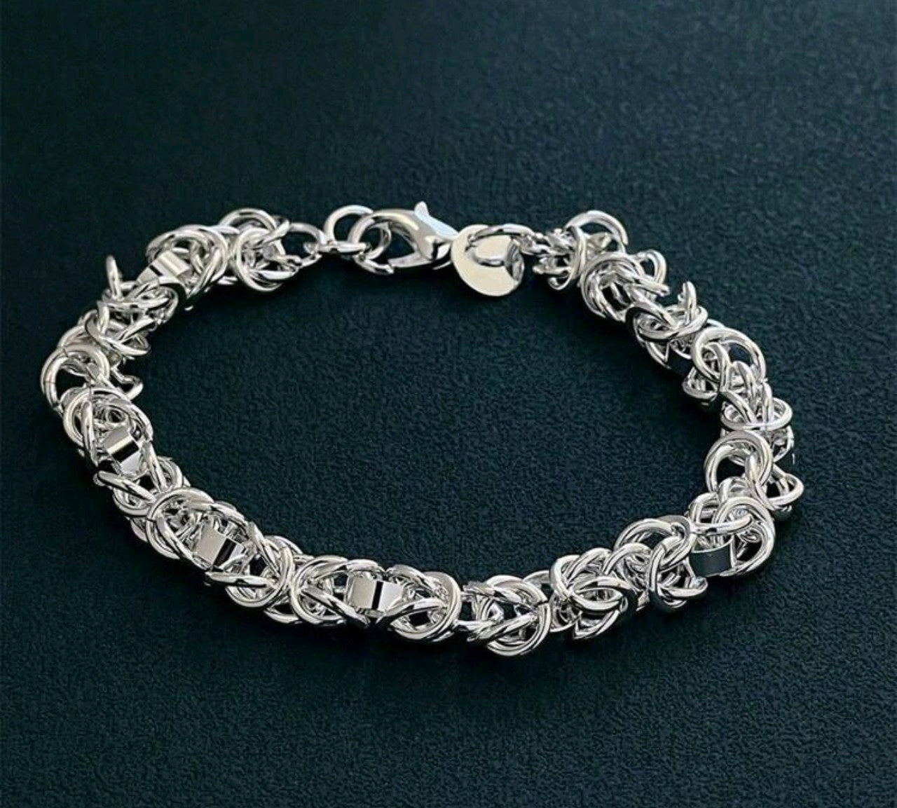 Гривната е 20 грама 20 см изработена е 50% сребро 50% мед има 925 маркировка но за по бюджетен вариант от вътре е медна от вън е сребро. Страхотна евтина алтернатива.