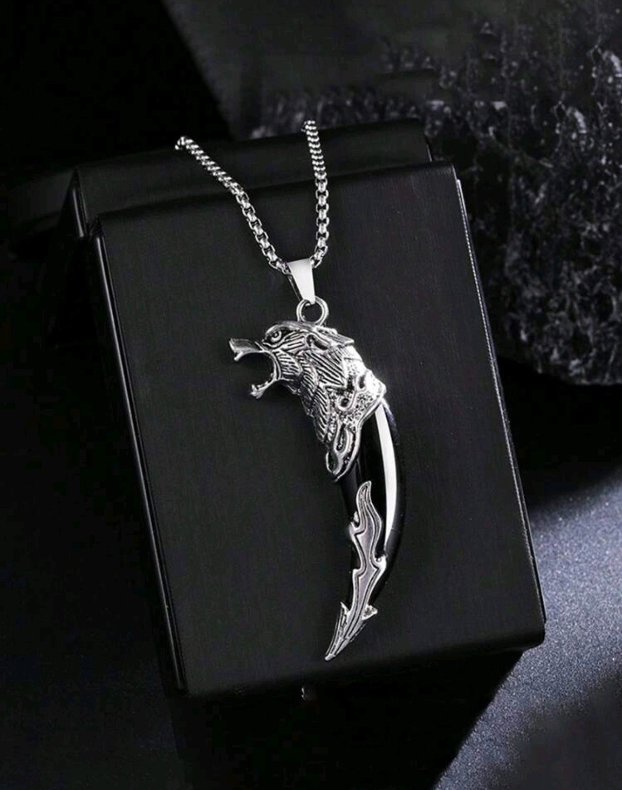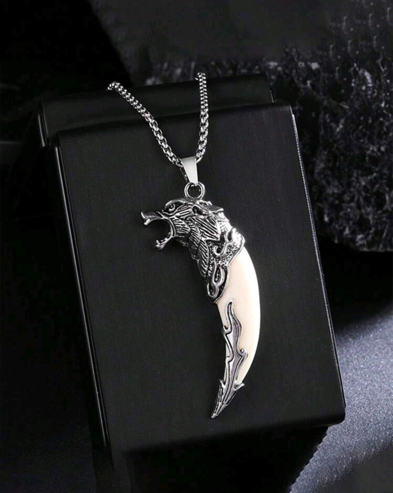 Ланеца е изработен от стомана със интересна гравирана висулка зъб в форма на вълк. Страхотно модно бижу за всеки аутфит! Предлага се в бял и черен цвят!