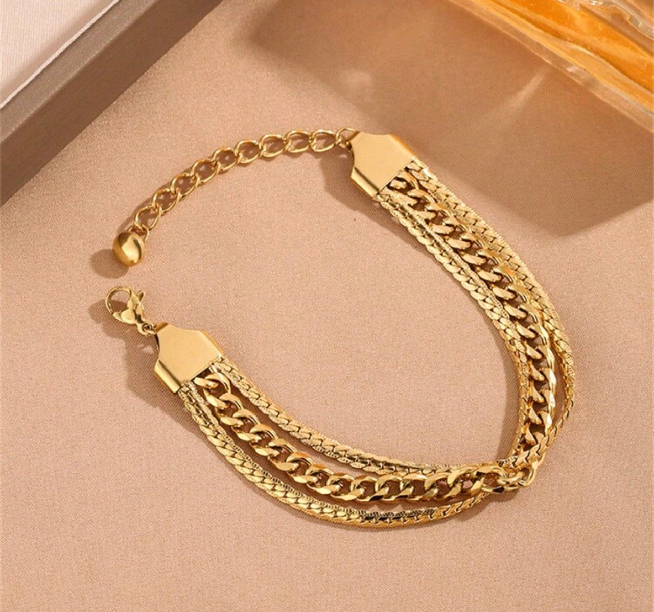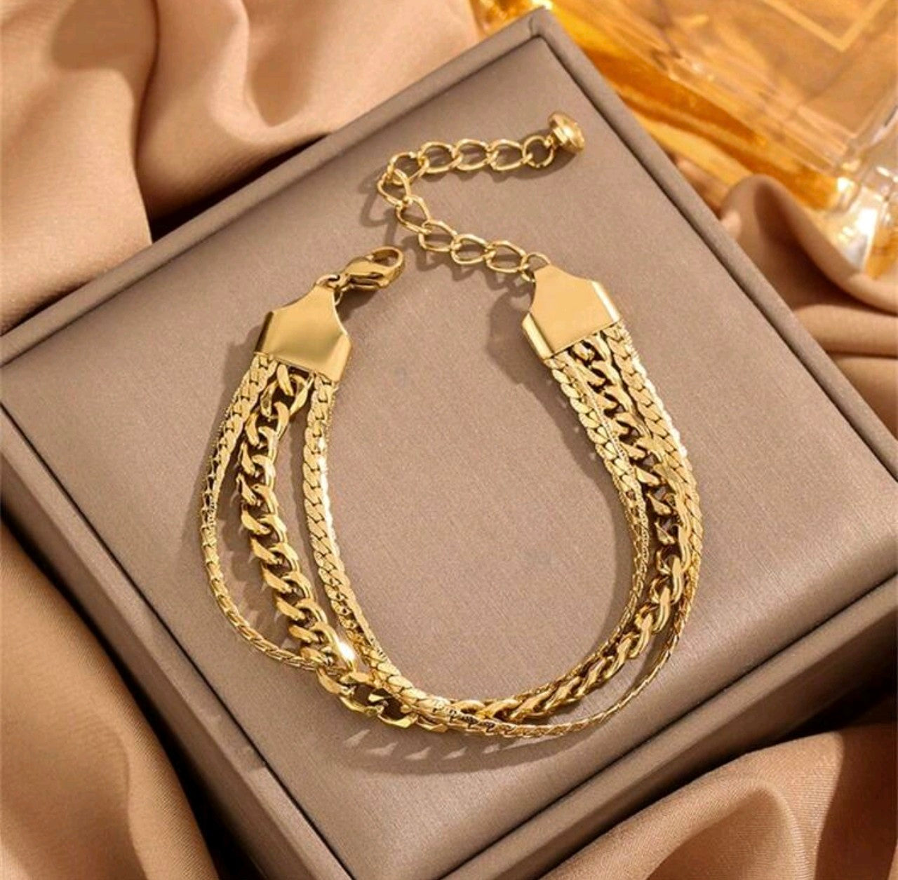 Гривната е чисто нова изработена е от медицинско злато и не променят цвета си. Дължината е регулируема и може да се нагласи от 14 до цели 22 см по ваш избор. Страхотна евтина алтернатива на супер скъпото злато днешни дни.