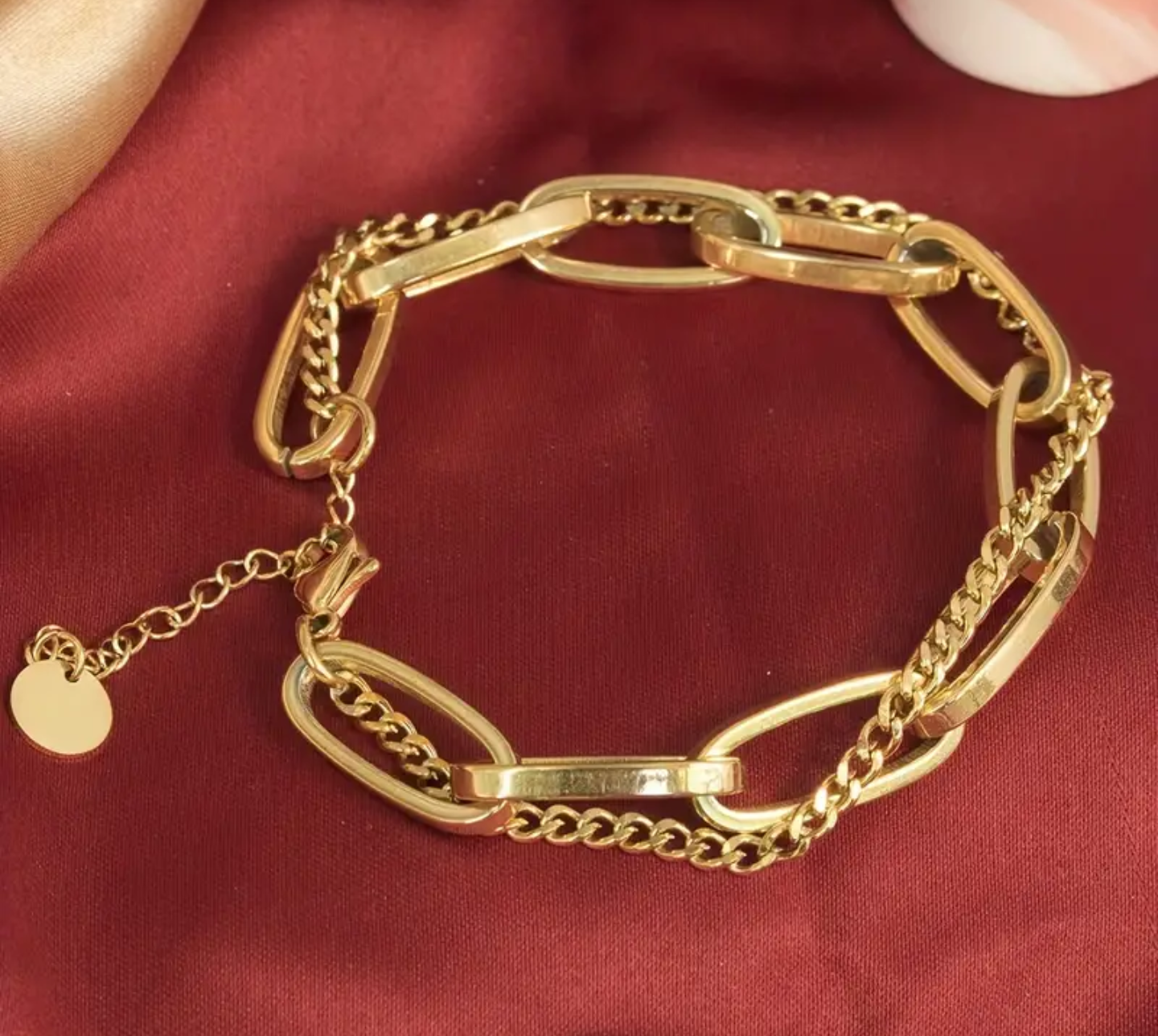 Гривната е чисто нова изработена от медицинско злато. Не променя цвета си. Внос Италия! Дължина 17-22см