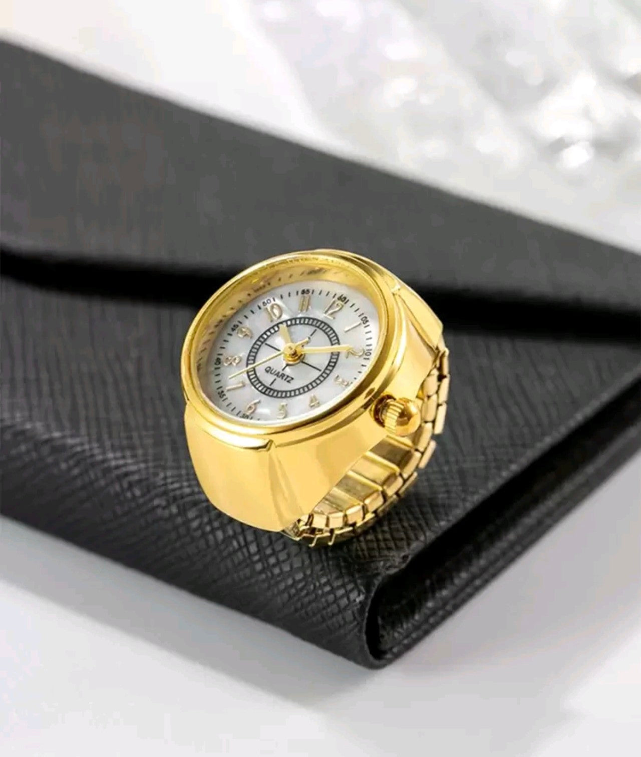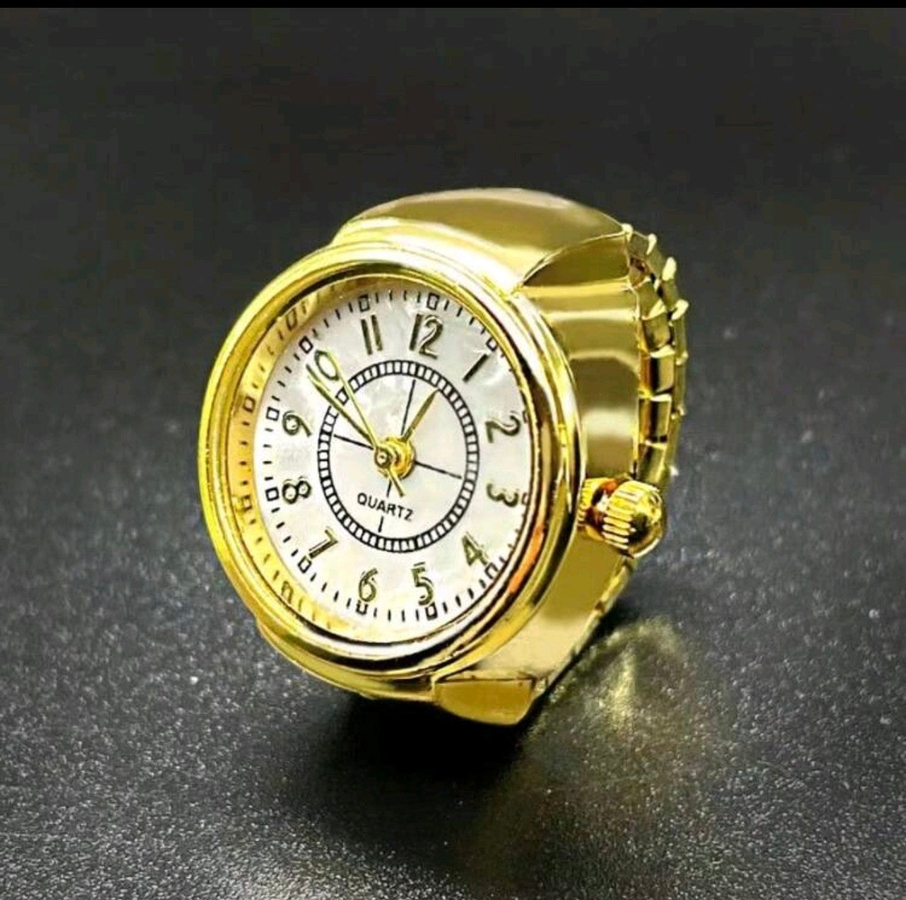 Пръстена часовник е с разтегателна каишка и става на всеки пръст! 14к златно покритие. Пръстена е истински функциониращ кварцов часовник който показва точно часа. Страхотен подарък!