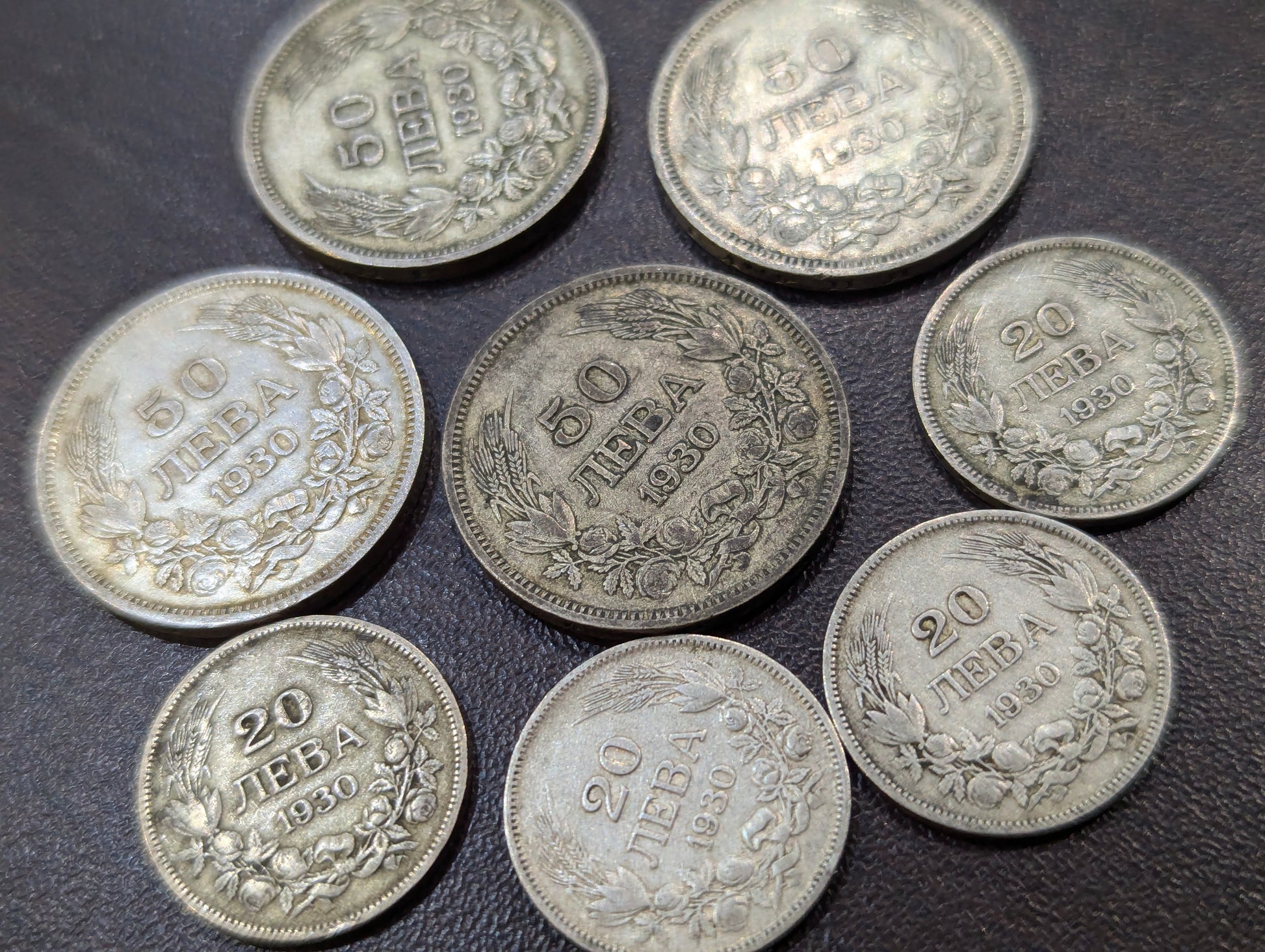 8 броя български автентични сребърни монети с Цар Борис! Страхотна инвестиция срещу инфлацията. Цената на среброто само , ще расте ,а тези монети са на 100 години !